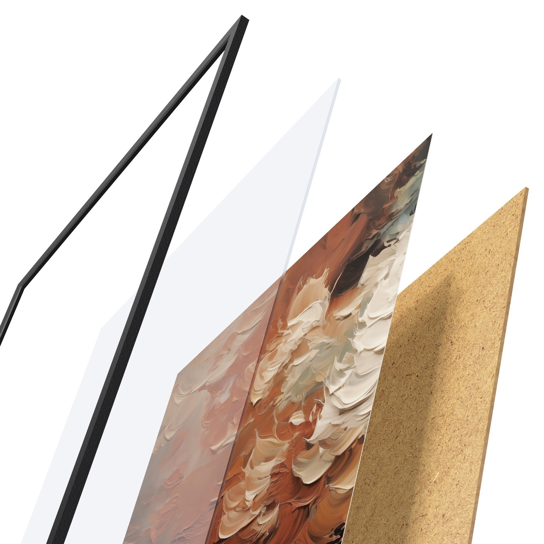Plakāts sastāv no rāmja, pleksstikla, iespiestā attēla un skaidu plātnes pamatnes. Plakātu var uzreiz piekarināt pie sienas, pateicoties aizmugurē esošajiem stiprinājumiem.