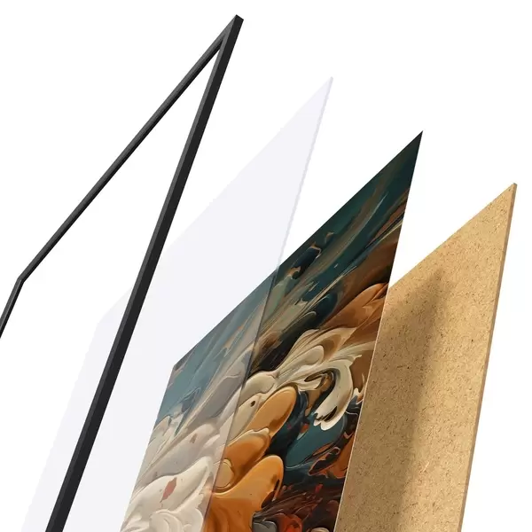 Plakāts sastāv no rāmja, pleksstikla, iespiestā attēla un skaidu plātnes pamatnes. Plakātu var uzreiz piekarināt pie sienas, pateicoties aizmugurē esošajiem stiprinājumiem.