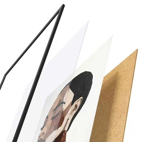 Plakāts sastāv no rāmja, pleksstikla, iespiestā attēla un skaidu plātnes pamatnes. Plakātu var uzreiz piekarināt pie sienas, pateicoties aizmugurē esošajiem stiprinājumiem.