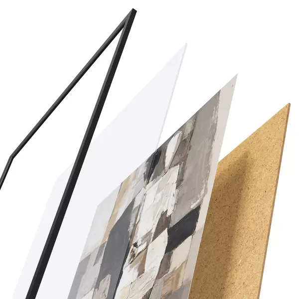 Plakāts sastāv no rāmja, pleksstikla, iespiestā attēla un skaidu plātnes pamatnes. Plakātu var uzreiz piekarināt pie sienas, pateicoties aizmugurē esošajiem stiprinājumiem.