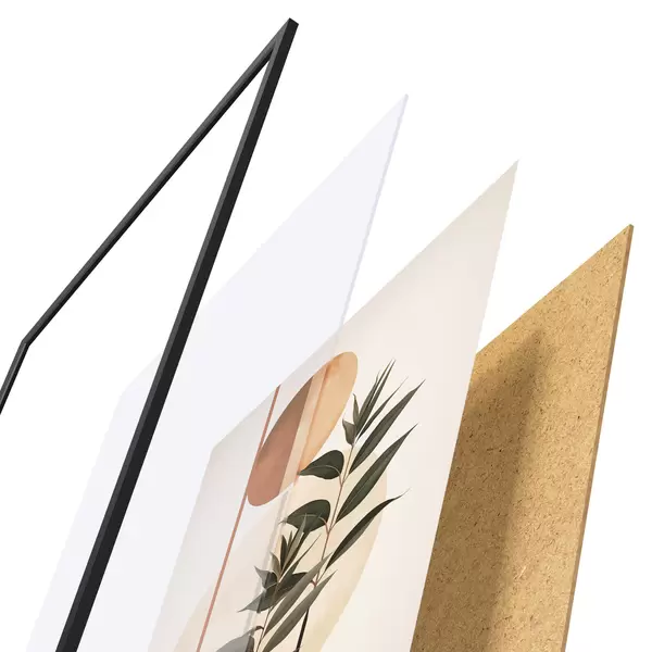 Plakāts sastāv no rāmja, pleksstikla, iespiestā attēla un skaidu plātnes pamatnes. Plakātu var uzreiz piekarināt pie sienas, pateicoties aizmugurē esošajiem stiprinājumiem.