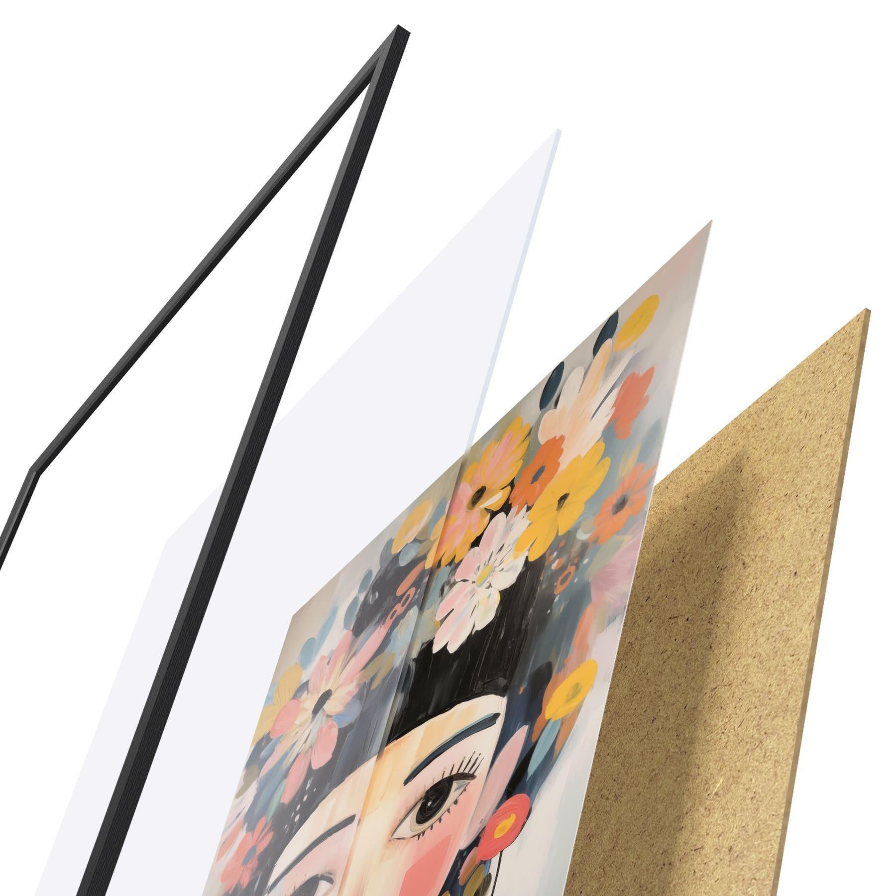 Plakāts sastāv no rāmja, pleksstikla, iespiestā attēla un skaidu plātnes pamatnes. Plakātu var uzreiz piekarināt pie sienas, pateicoties aizmugurē esošajiem stiprinājumiem.