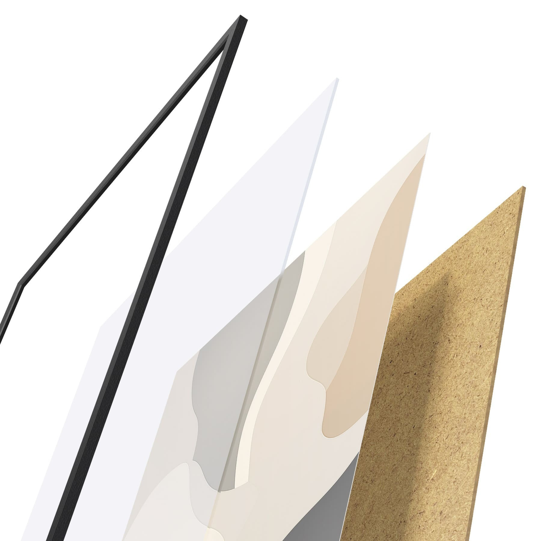 Plakāts sastāv no rāmja, pleksstikla, iespiestā attēla un skaidu plātnes pamatnes. Plakātu var uzreiz piekarināt pie sienas, pateicoties aizmugurē esošajiem stiprinājumiem.