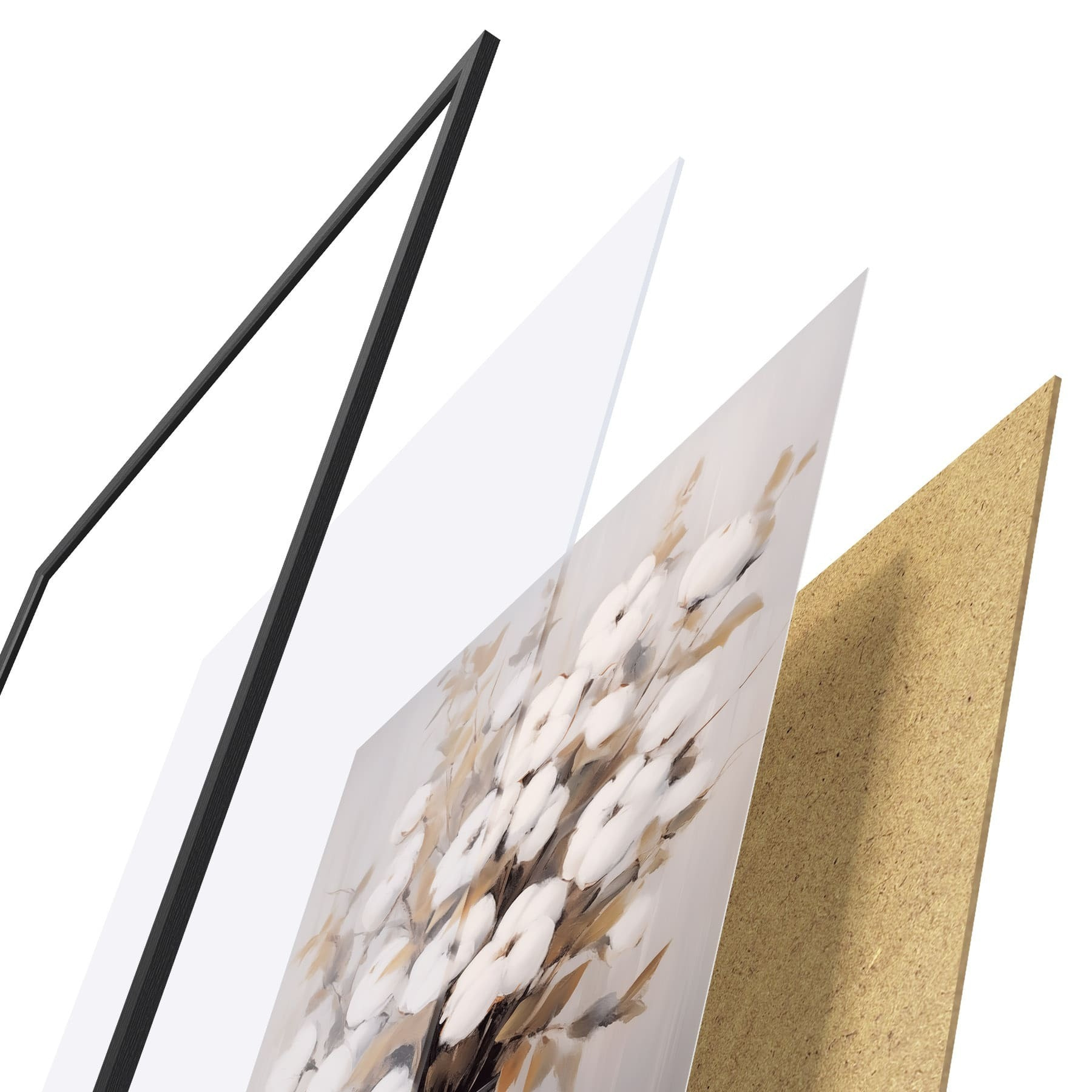 Plakāts sastāv no rāmja, pleksstikla, iespiestā attēla un skaidu plātnes pamatnes. Plakātu var uzreiz piekarināt pie sienas, pateicoties aizmugurē esošajiem stiprinājumiem.