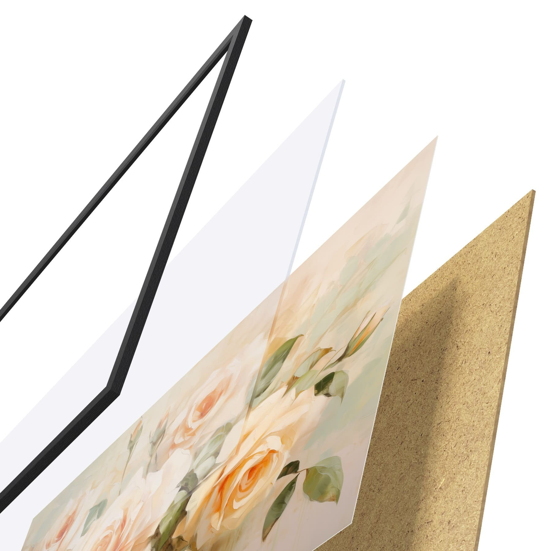 Plakāts sastāv no rāmja, pleksstikla, iespiestā attēla un skaidu plātnes pamatnes. Plakātu var uzreiz piekarināt pie sienas, pateicoties aizmugurē esošajiem stiprinājumiem.