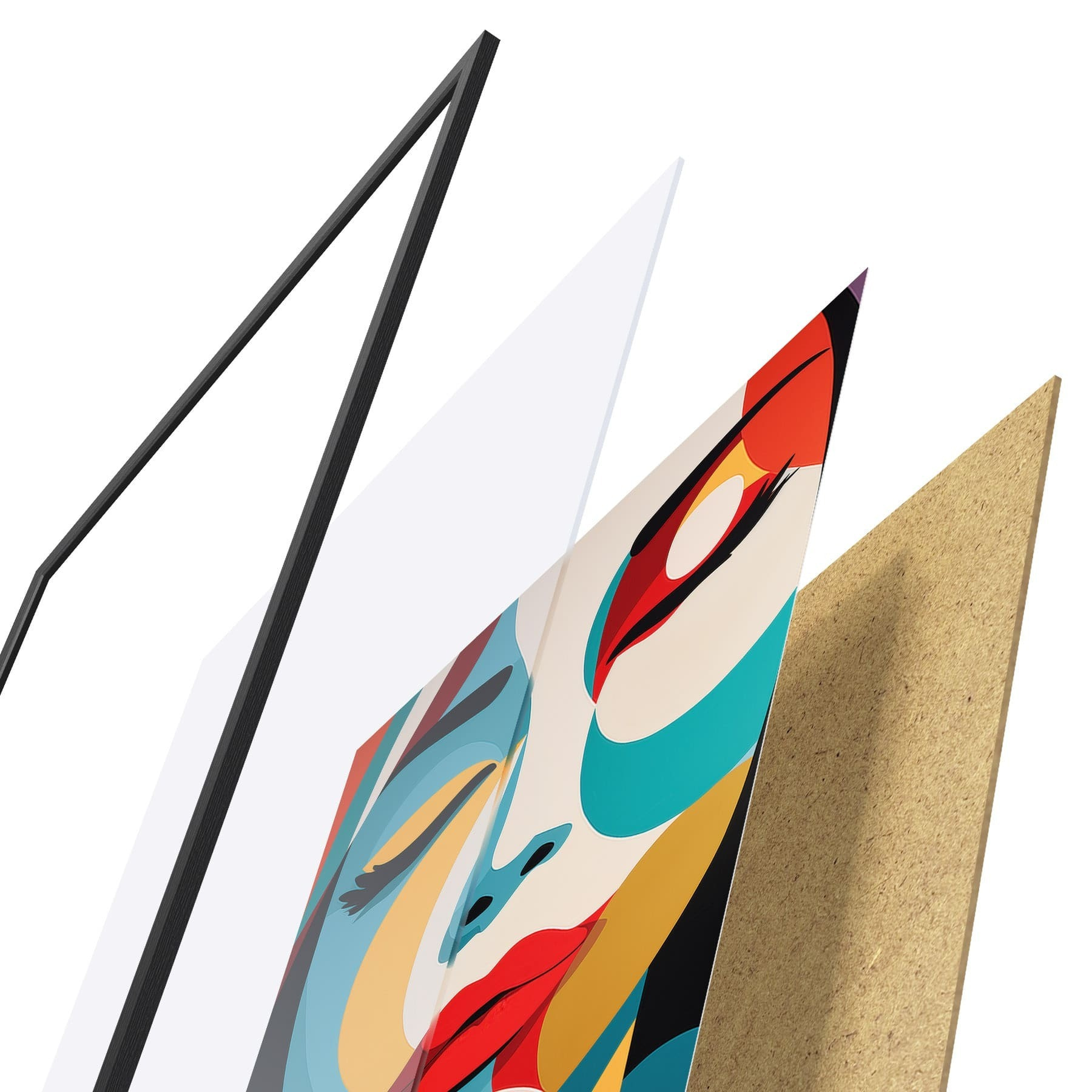 Plakāts sastāv no rāmja, pleksstikla, iespiestā attēla un skaidu plātnes pamatnes. Plakātu var uzreiz piekarināt pie sienas, pateicoties aizmugurē esošajiem stiprinājumiem.