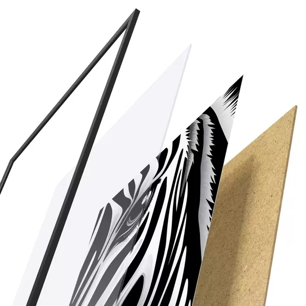 Plakāts sastāv no rāmja, pleksstikla, iespiestā attēla un skaidu plātnes pamatnes. Plakātu var uzreiz piekarināt pie sienas, pateicoties aizmugurē esošajiem stiprinājumiem.