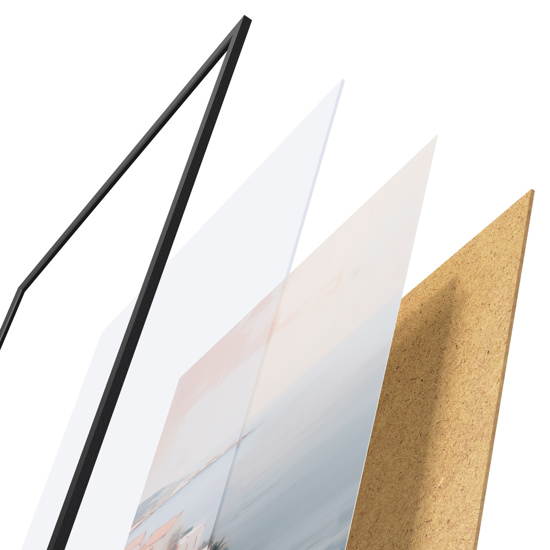 Plakāts sastāv no rāmja, pleksstikla, iespiestā attēla un skaidu plātnes pamatnes. Plakātu var uzreiz piekarināt pie sienas, pateicoties aizmugurē esošajiem stiprinājumiem.