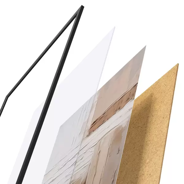 Plakāts sastāv no rāmja, pleksstikla, iespiestā attēla un skaidu plātnes pamatnes. Plakātu var uzreiz piekarināt pie sienas, pateicoties aizmugurē esošajiem stiprinājumiem.