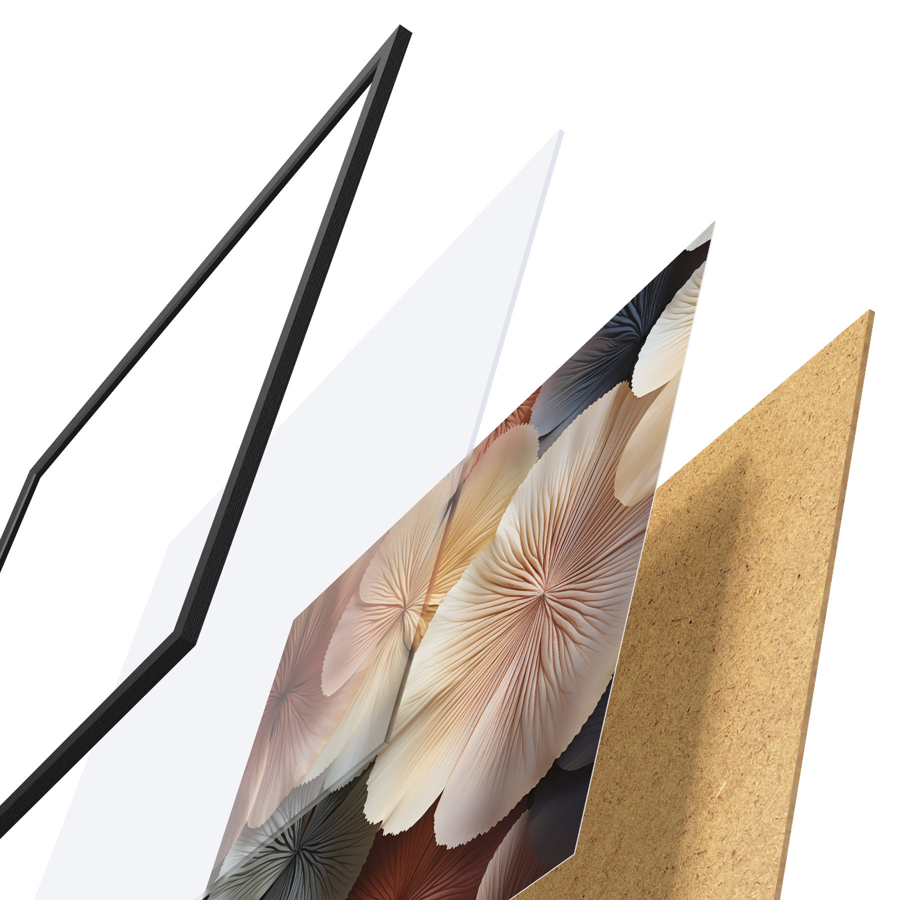 Plakāts sastāv no rāmja, pleksstikla, iespiestā attēla un skaidu plātnes pamatnes. Plakātu var uzreiz piekarināt pie sienas, pateicoties aizmugurē esošajiem stiprinājumiem.