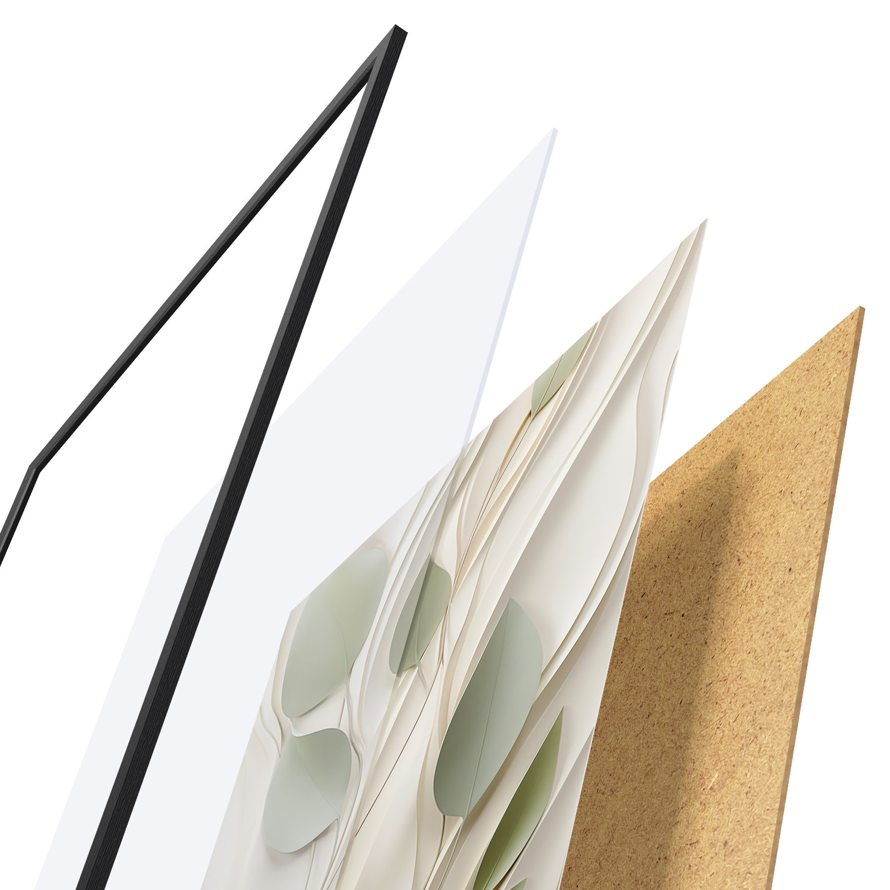 Plakāts sastāv no rāmja, pleksstikla, iespiestā attēla un skaidu plātnes pamatnes. Plakātu var uzreiz piekarināt pie sienas, pateicoties aizmugurē esošajiem stiprinājumiem.