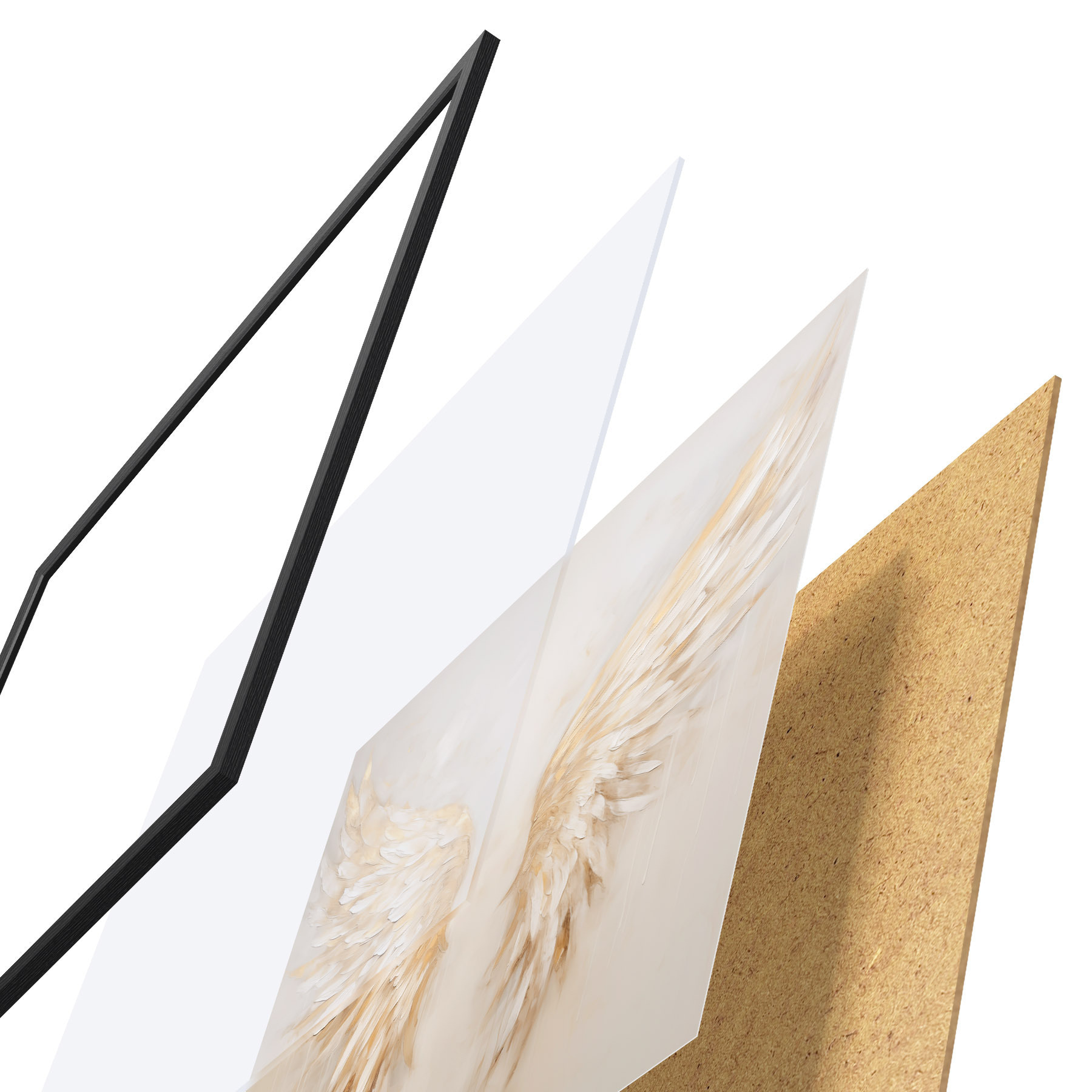 Plakāts sastāv no rāmja, pleksstikla, iespiestā attēla un skaidu plātnes pamatnes. Plakātu var uzreiz piekarināt pie sienas, pateicoties aizmugurē esošajiem stiprinājumiem.