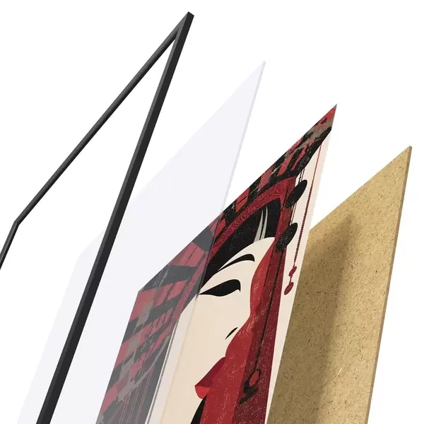 Plakāts sastāv no rāmja, pleksstikla, iespiestā attēla un skaidu plātnes pamatnes. Plakātu var uzreiz piekarināt pie sienas, pateicoties aizmugurē esošajiem stiprinājumiem.