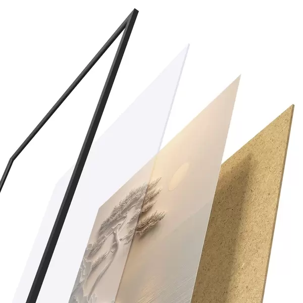 Plakāts sastāv no rāmja, pleksstikla, iespiestā attēla un skaidu plātnes pamatnes. Plakātu var uzreiz piekarināt pie sienas, pateicoties aizmugurē esošajiem stiprinājumiem.