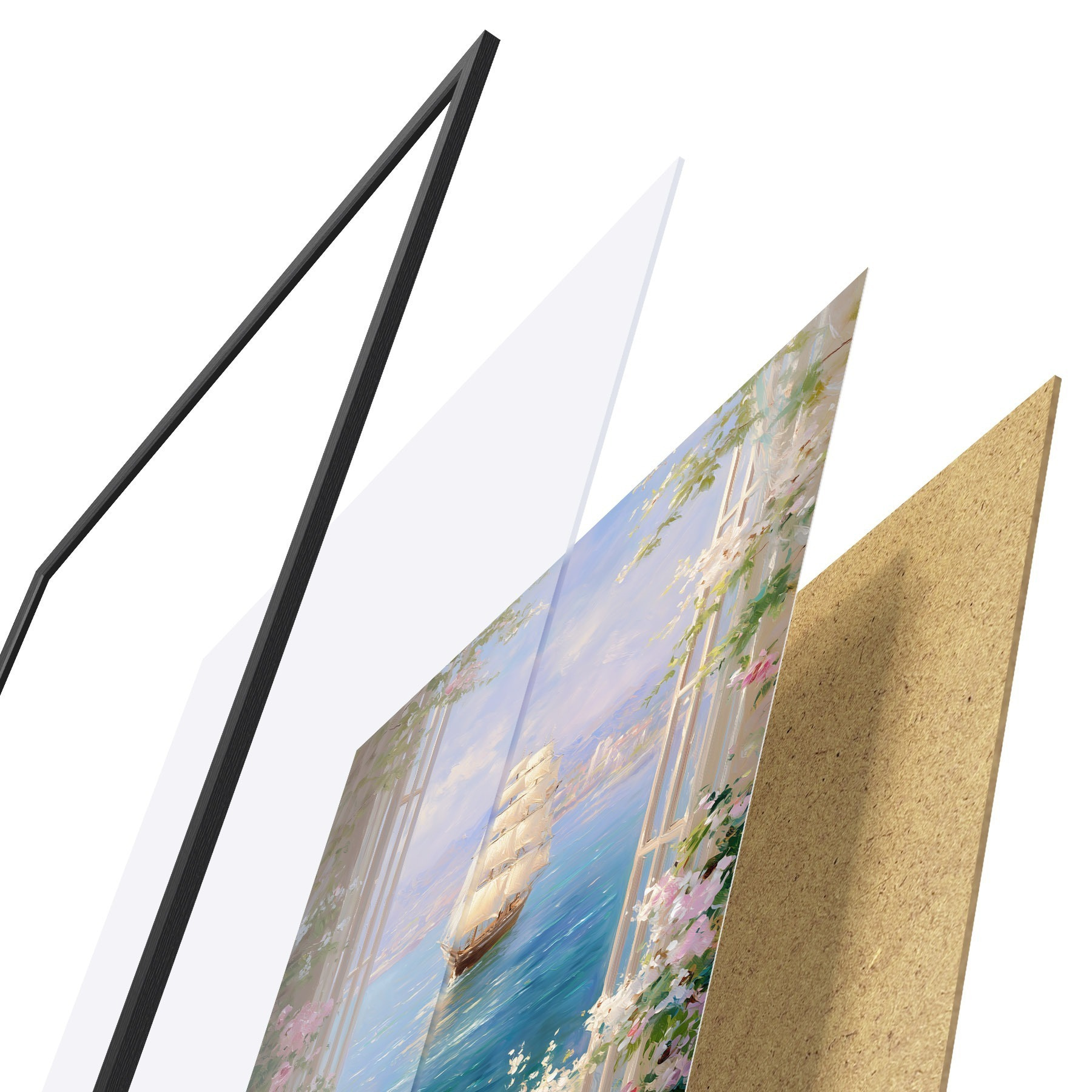 Plakāts sastāv no rāmja, pleksstikla, iespiestā attēla un skaidu plātnes pamatnes. Plakātu var uzreiz piekarināt pie sienas, pateicoties aizmugurē esošajiem stiprinājumiem.