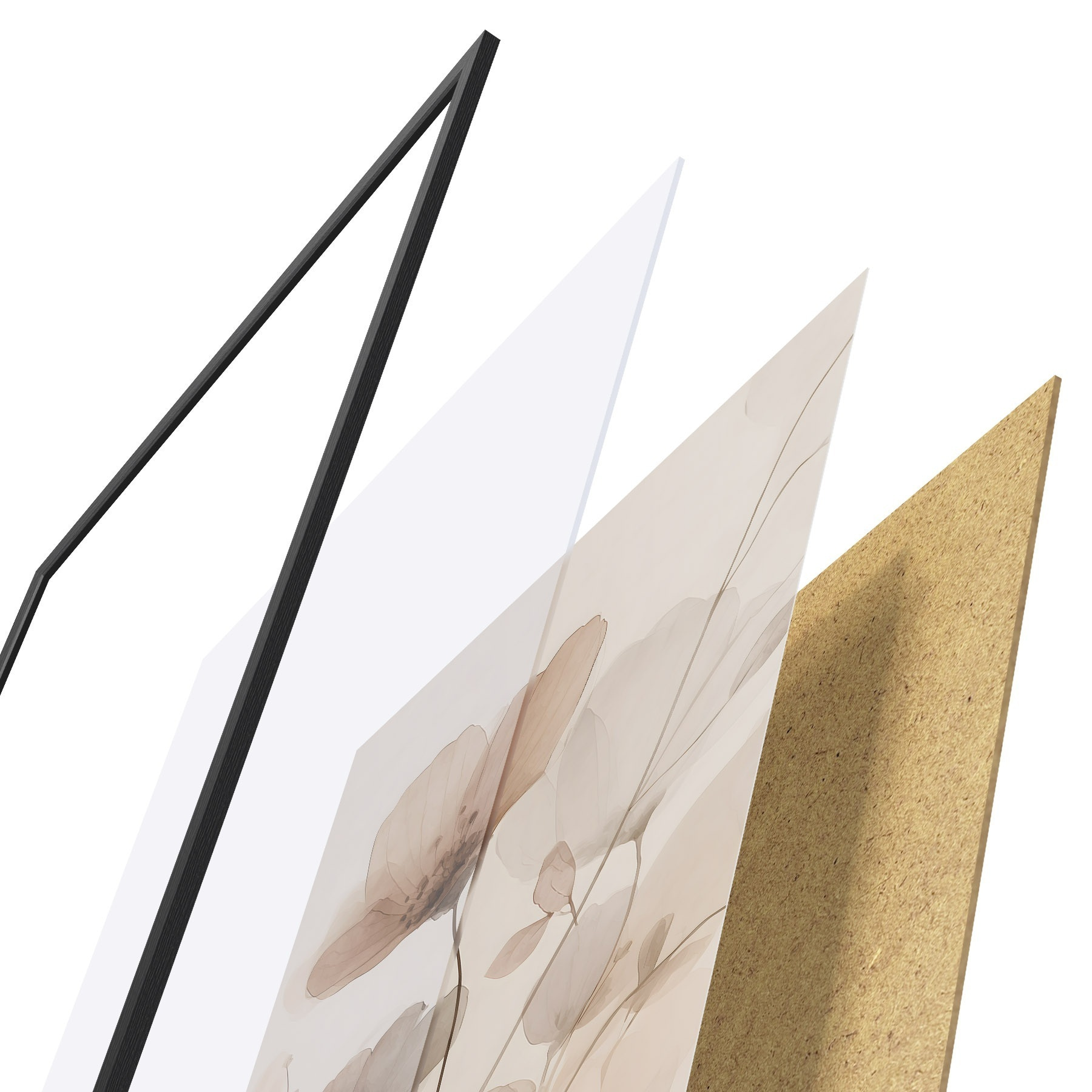 Plakāts sastāv no rāmja, pleksstikla, iespiestā attēla un skaidu plātnes pamatnes. Plakātu var uzreiz piekarināt pie sienas, pateicoties aizmugurē esošajiem stiprinājumiem.