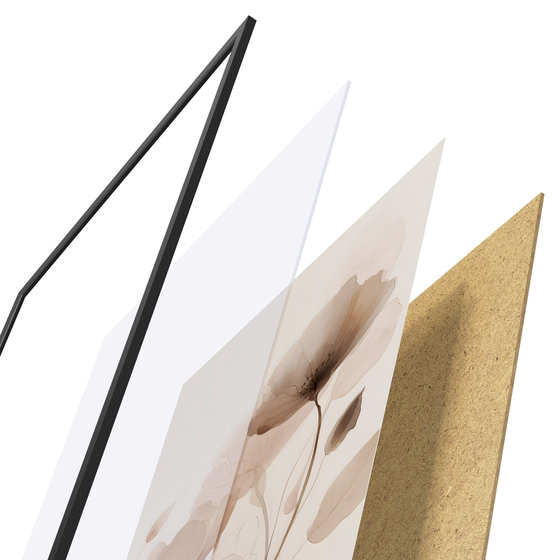 Plakāts sastāv no rāmja, pleksstikla, iespiestā attēla un skaidu plātnes pamatnes. Plakātu var uzreiz piekarināt pie sienas, pateicoties aizmugurē esošajiem stiprinājumiem.