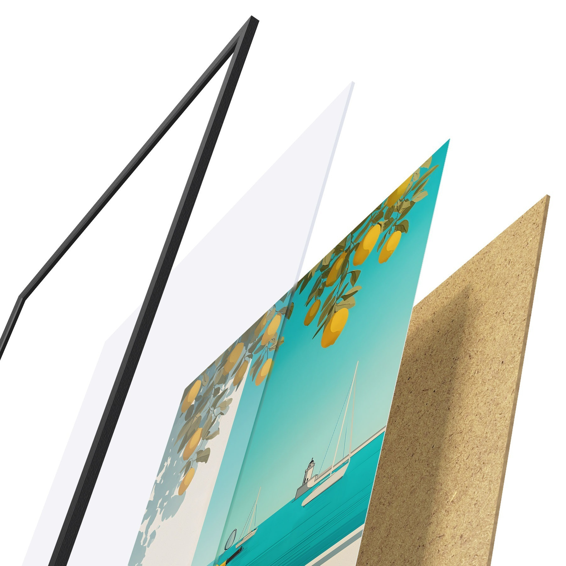 Plakāts sastāv no rāmja, pleksstikla, iespiestā attēla un skaidu plātnes pamatnes. Plakātu var uzreiz piekarināt pie sienas, pateicoties aizmugurē esošajiem stiprinājumiem.