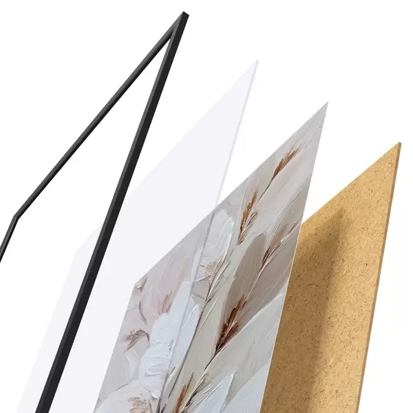 Plakāts sastāv no rāmja, pleksstikla, iespiestā attēla un skaidu plātnes pamatnes. Plakātu var uzreiz piekarināt pie sienas, pateicoties aizmugurē esošajiem stiprinājumiem.