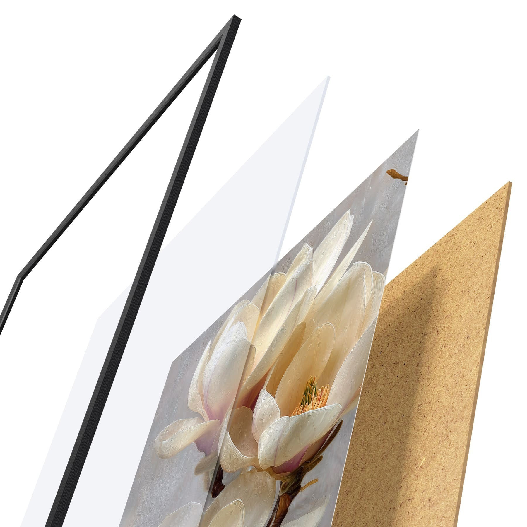 Plakāts sastāv no rāmja, pleksstikla, iespiestā attēla un skaidu plātnes pamatnes. Plakātu var uzreiz piekarināt pie sienas, pateicoties aizmugurē esošajiem stiprinājumiem.