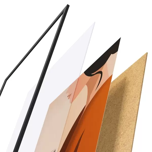 Plakāts sastāv no rāmja, pleksstikla, iespiestā attēla un skaidu plātnes pamatnes. Plakātu var uzreiz piekarināt pie sienas, pateicoties aizmugurē esošajiem stiprinājumiem.