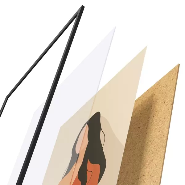 Plakāts sastāv no rāmja, pleksstikla, iespiestā attēla un skaidu plātnes pamatnes. Plakātu var uzreiz piekarināt pie sienas, pateicoties aizmugurē esošajiem stiprinājumiem.