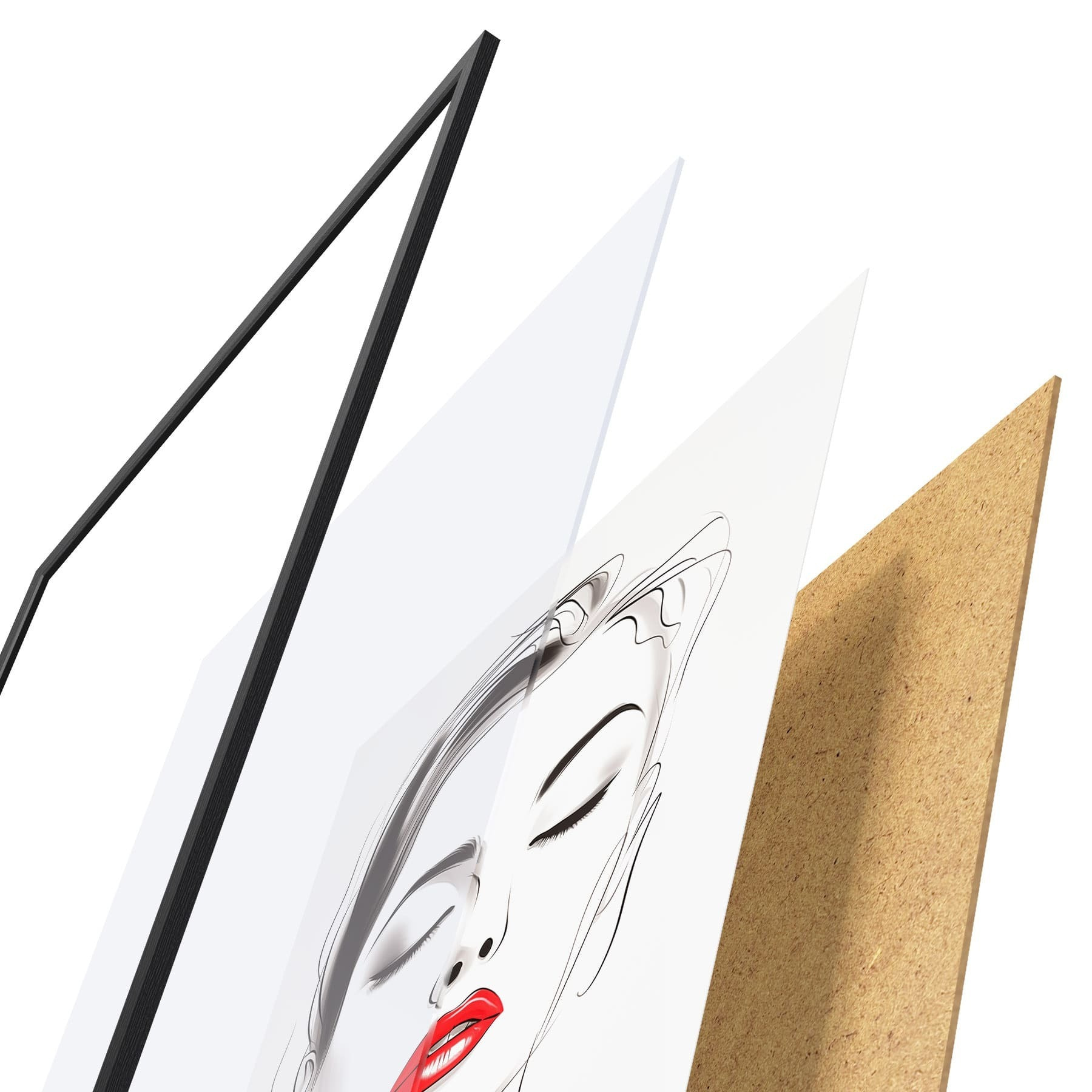 Plakāts sastāv no rāmja, pleksstikla, iespiestā attēla un skaidu plātnes pamatnes. Plakātu var uzreiz piekarināt pie sienas, pateicoties aizmugurē esošajiem stiprinājumiem.