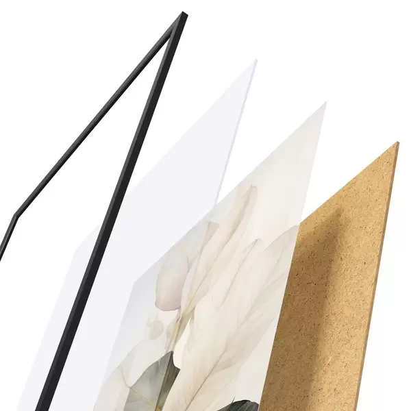 Plakāts sastāv no rāmja, pleksstikla, iespiestā attēla un skaidu plātnes pamatnes. Plakātu var uzreiz piekarināt pie sienas, pateicoties aizmugurē esošajiem stiprinājumiem.
