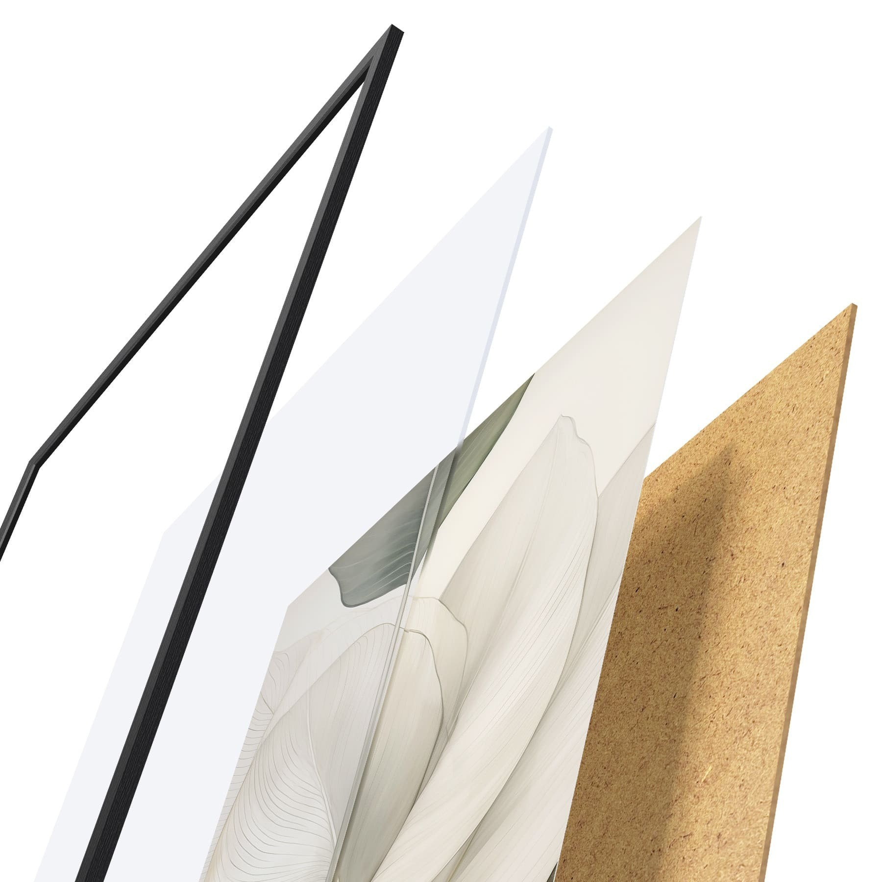 Plakāts sastāv no rāmja, pleksstikla, iespiestā attēla un skaidu plātnes pamatnes. Plakātu var uzreiz piekarināt pie sienas, pateicoties aizmugurē esošajiem stiprinājumiem.
