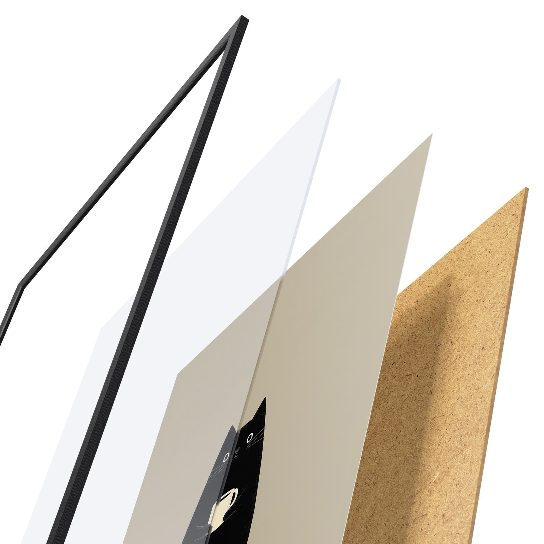 Plakāts sastāv no rāmja, pleksstikla, iespiestā attēla un skaidu plātnes pamatnes. Plakātu var uzreiz piekarināt pie sienas, pateicoties aizmugurē esošajiem stiprinājumiem.