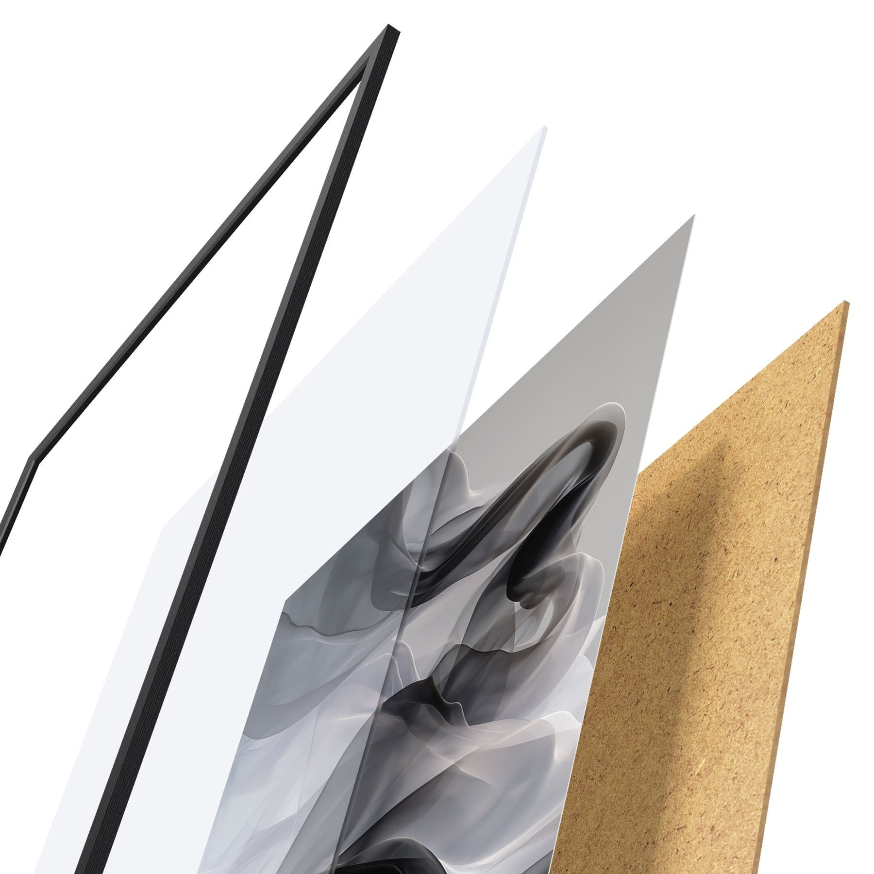 Plakāts sastāv no rāmja, pleksstikla, iespiestā attēla un skaidu plātnes pamatnes. Plakātu var uzreiz piekarināt pie sienas, pateicoties aizmugurē esošajiem stiprinājumiem.