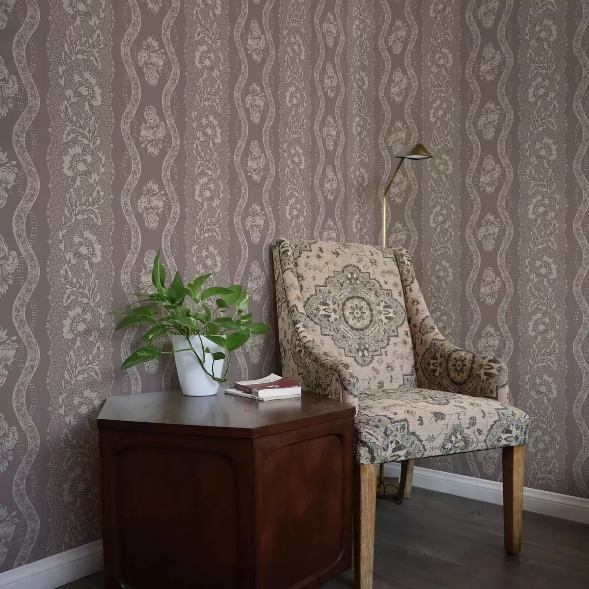 Tapetes Maigs ģeometriskais ornaments ar ziediem un izliektām līnijām Nr. a00033