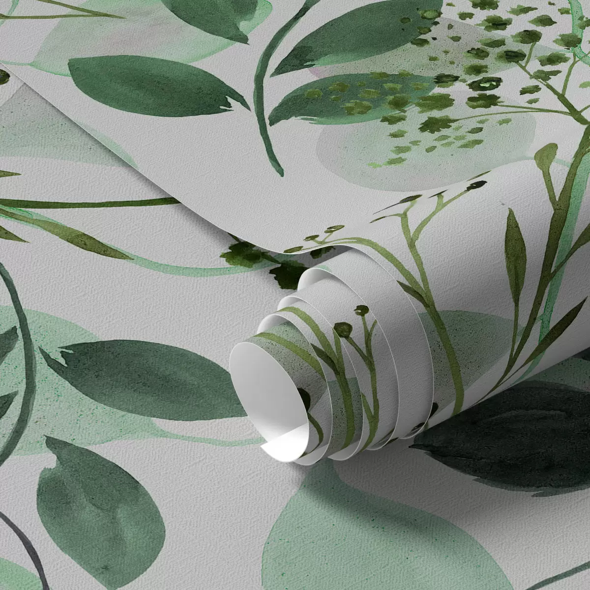 Tapetes Rudens lapas akvareļu stilā zaļos toņos Nr. a00048v1
