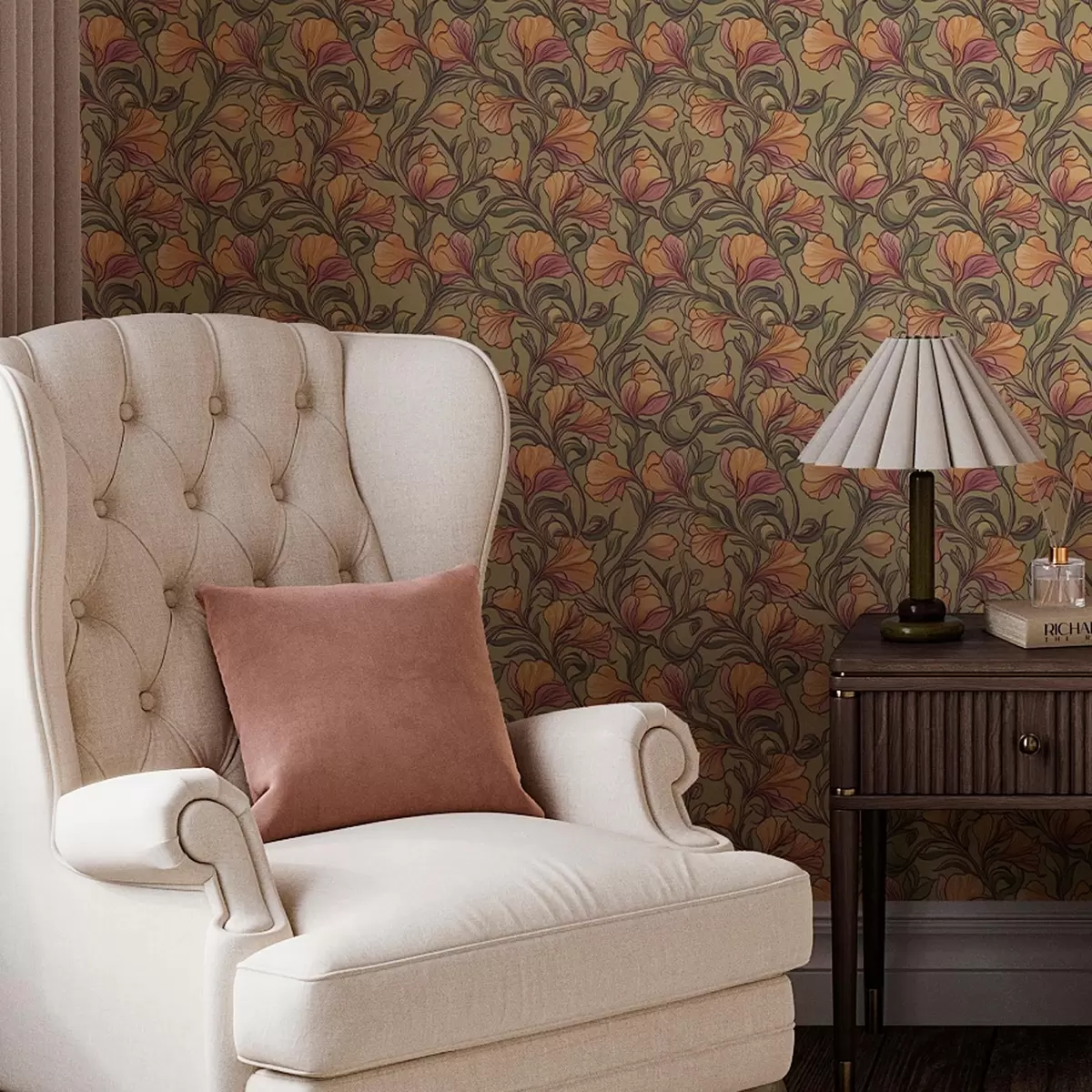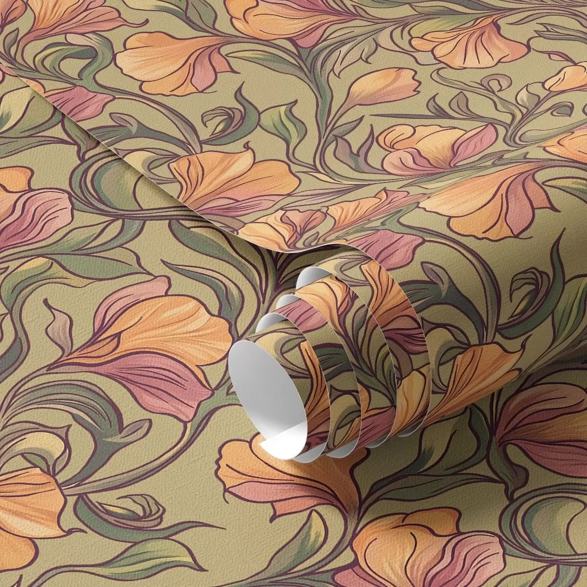Tapetes Spilgti savīti stublāji ar lapām un ziediem Nr. a00074