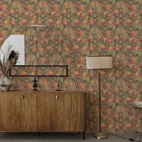 Tapetes Spilgti savīti stublāji ar lapām un ziediem Nr. a00074