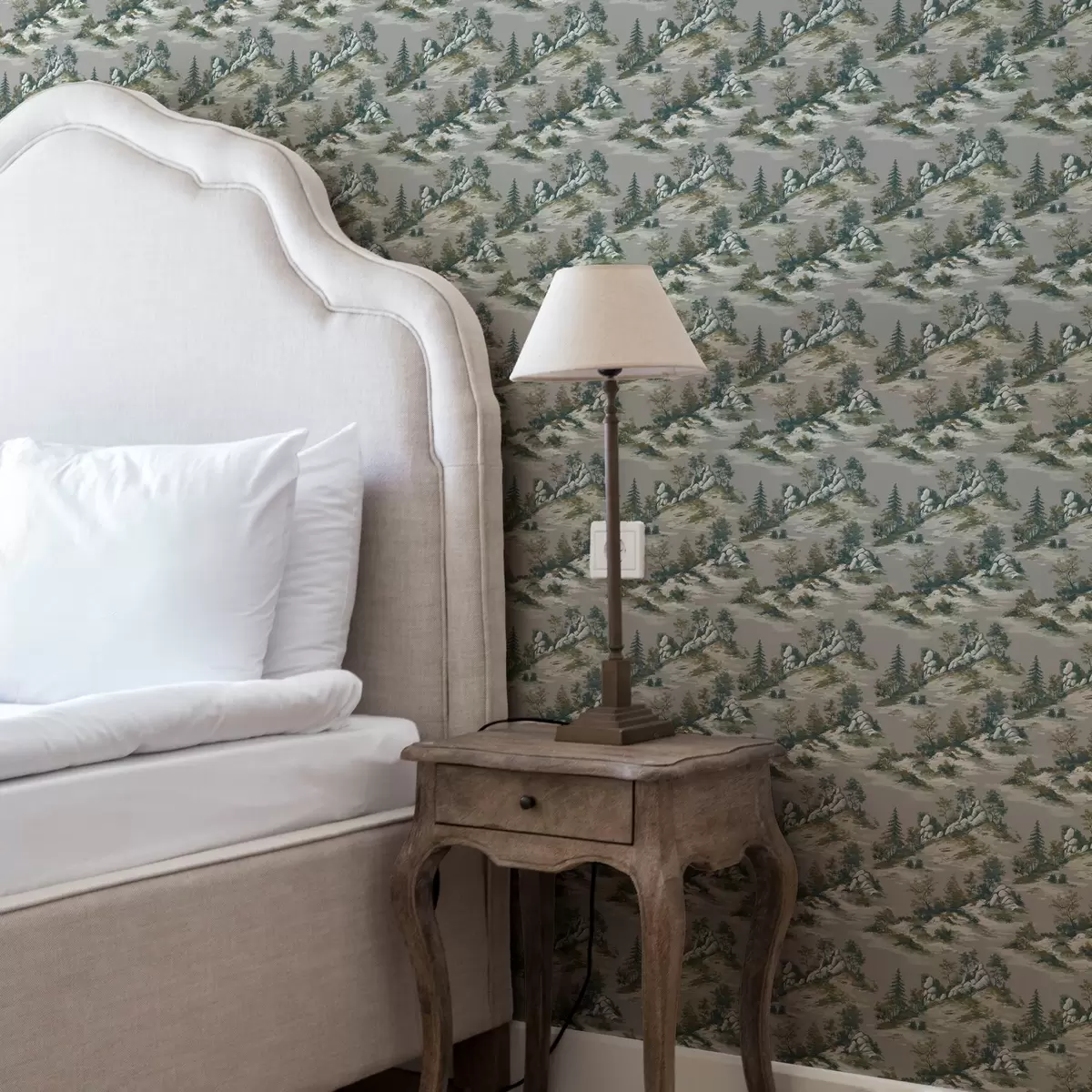 Tapetes Koki uz kalnainiem pakalniem ar akmeņiem uz pelēka fona Nr. a00090v1