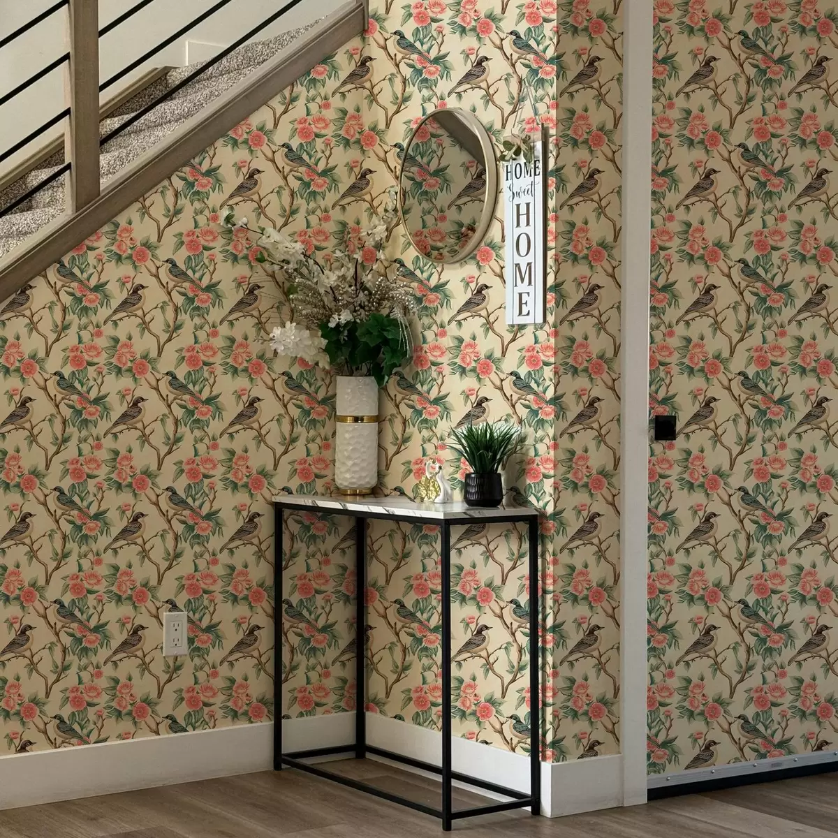Tapetes Nelieli putni uz zariem ar ziediem uz gaiša fona Nr. a00093