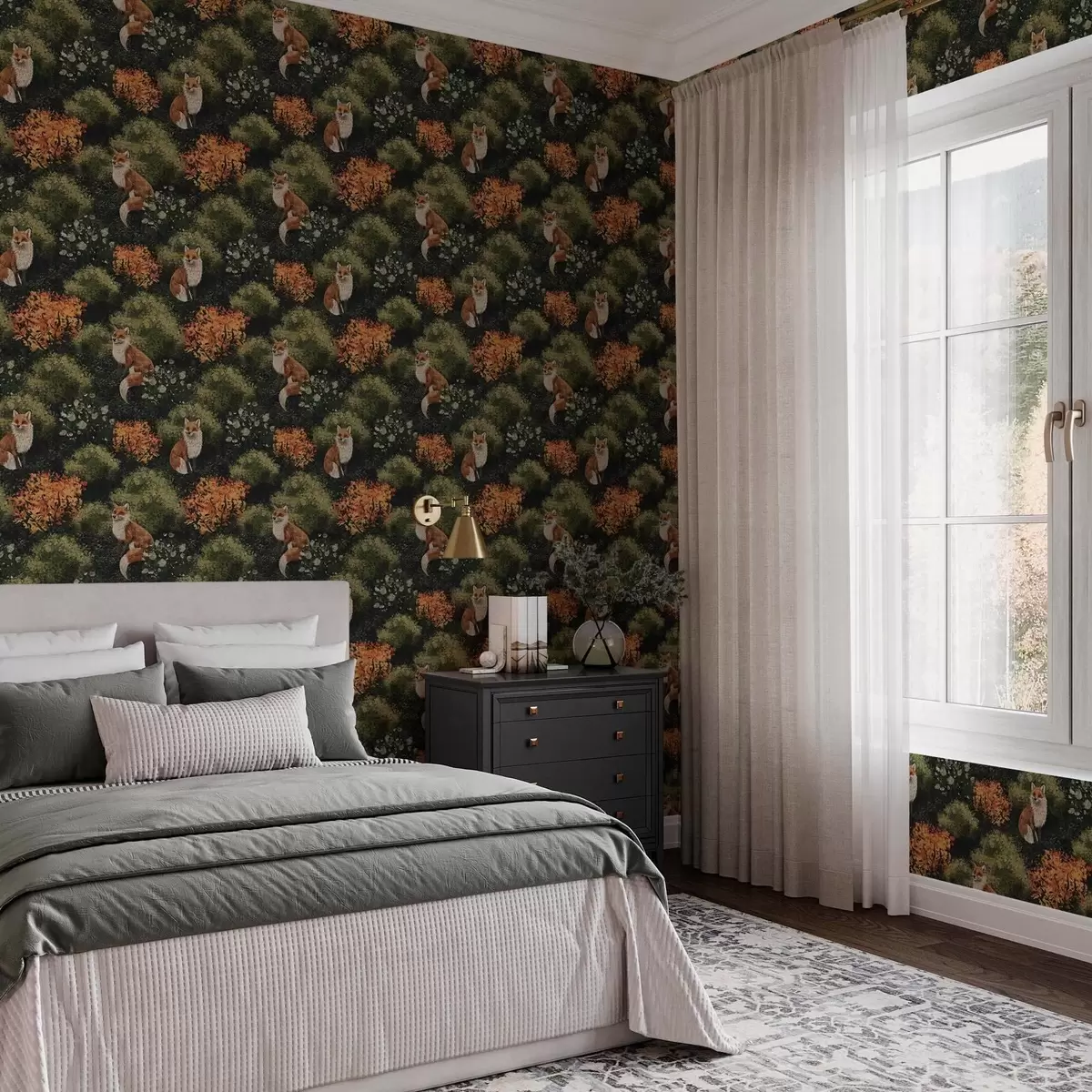 Tapetes Gailenes mežā ar rudens krūmiem uz tumša fona Nr. a00101