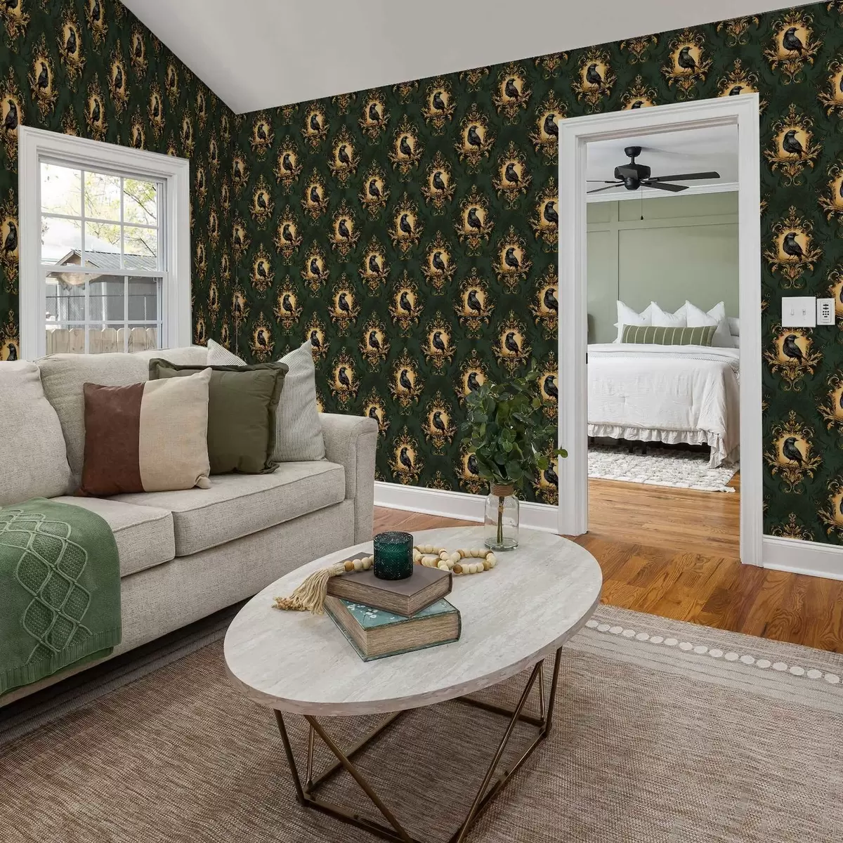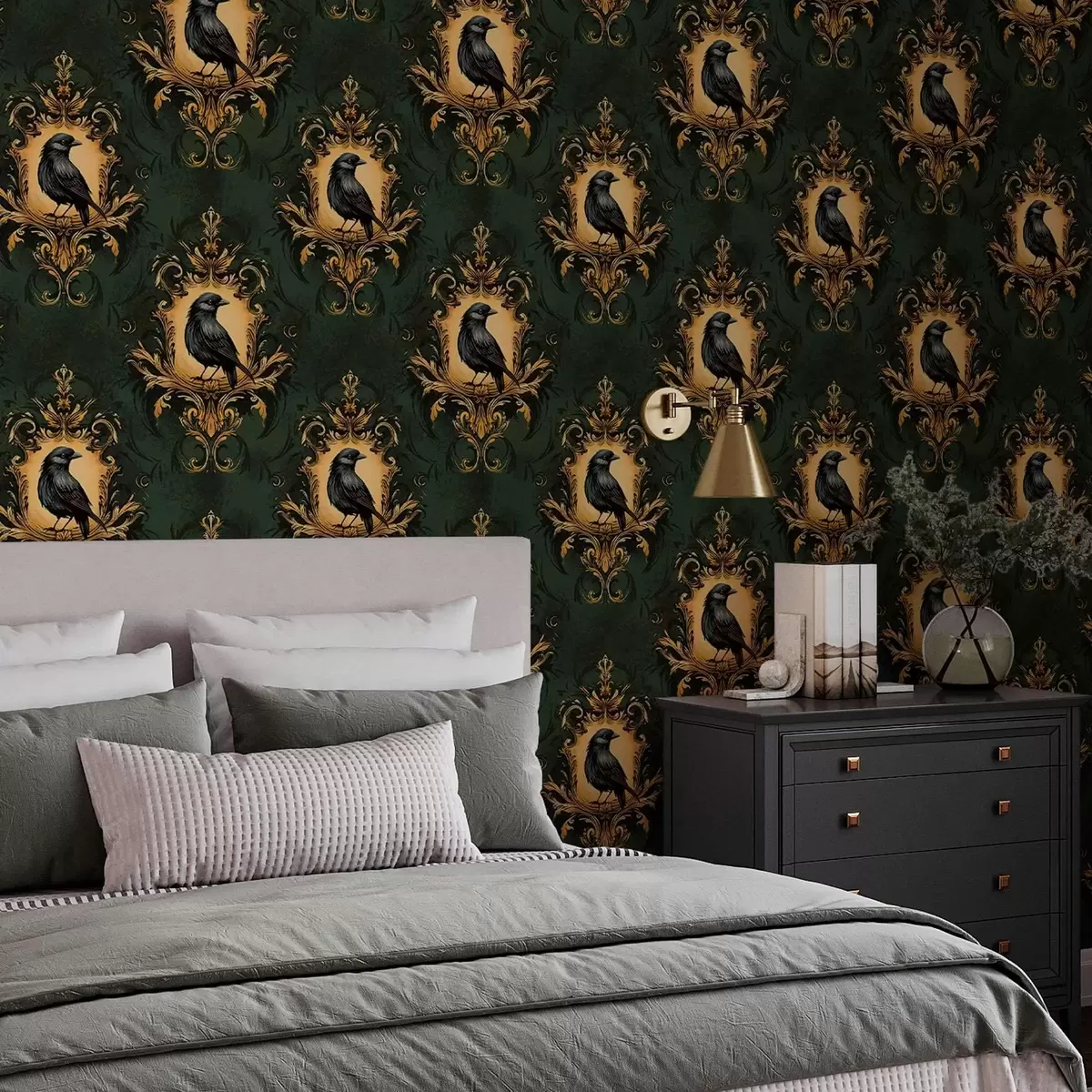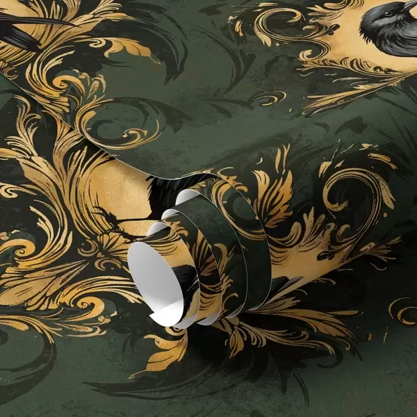 Tapetes Vārna rāmī uz zaļa fona Nr. a00105