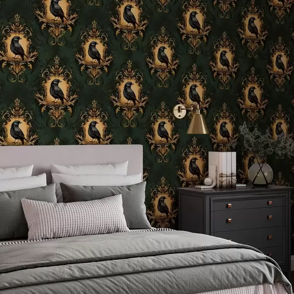 Tapetes Vārna rāmī uz zaļa fona Nr. a00105