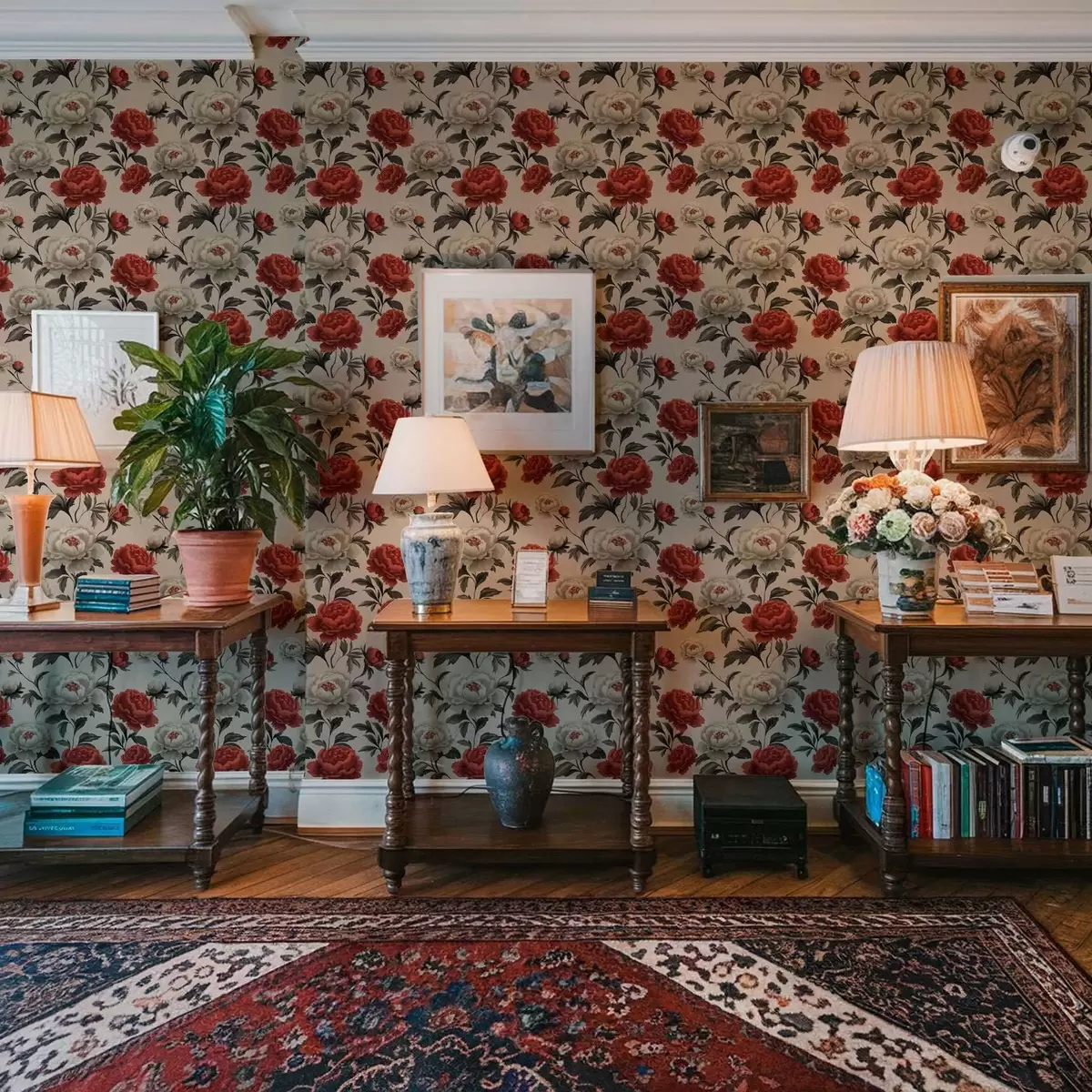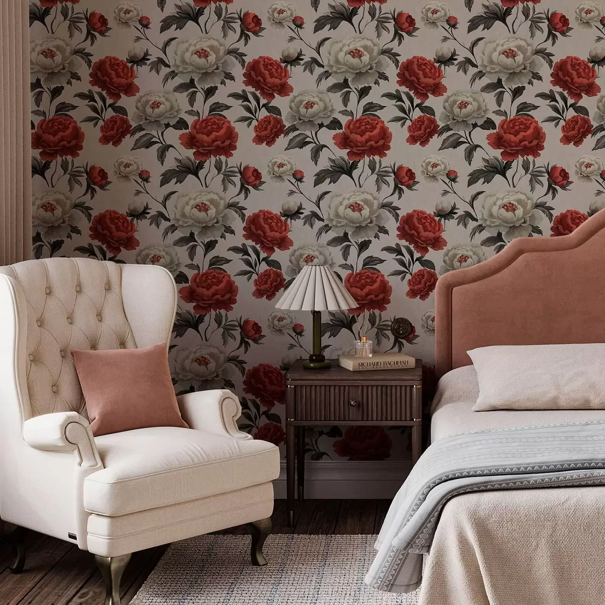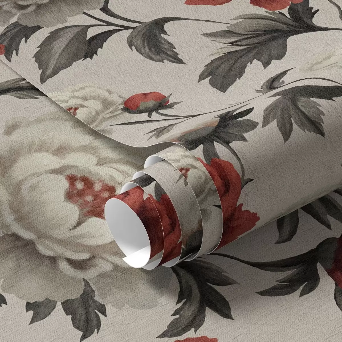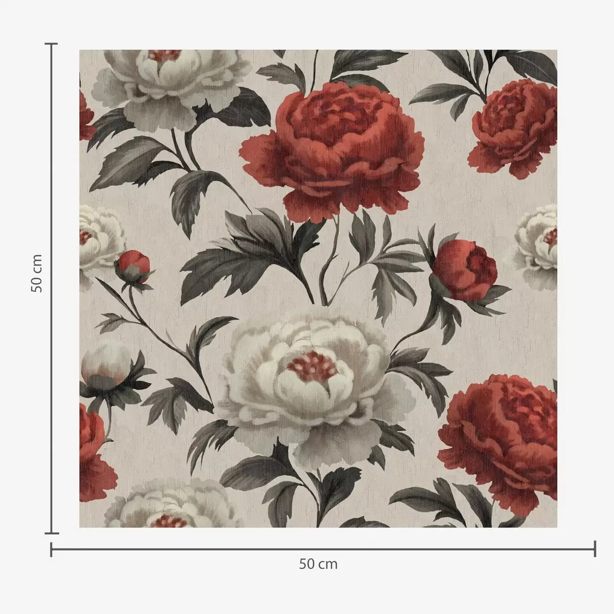 Tapetes Peonijas retro stilā uz bēša fona Nr. a00107