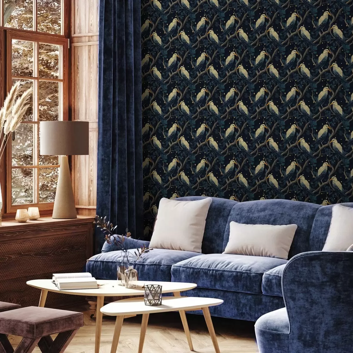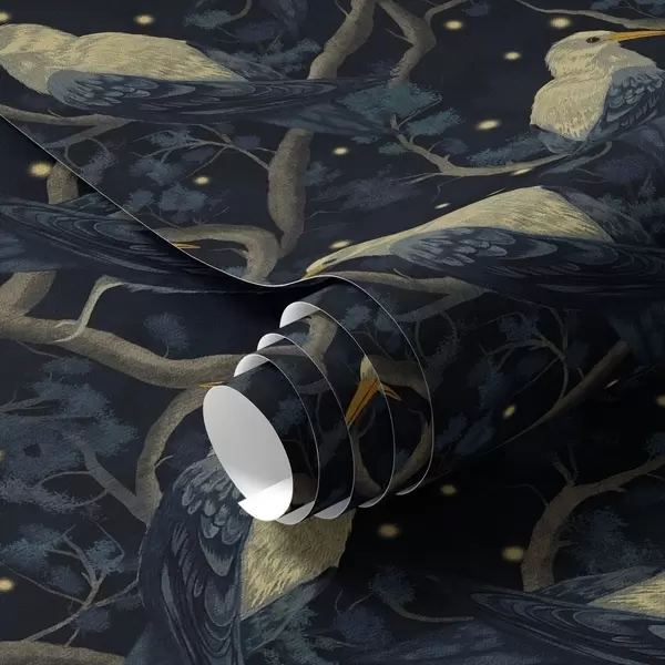 Tapetes Nakts putni uz zariem un zvaigznēm uz tumši zila fona Nr. a00109v1