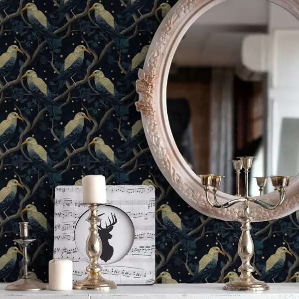 Tapetes Nakts putni uz zariem un zvaigznēm uz tumši zila fona Nr. a00109v1