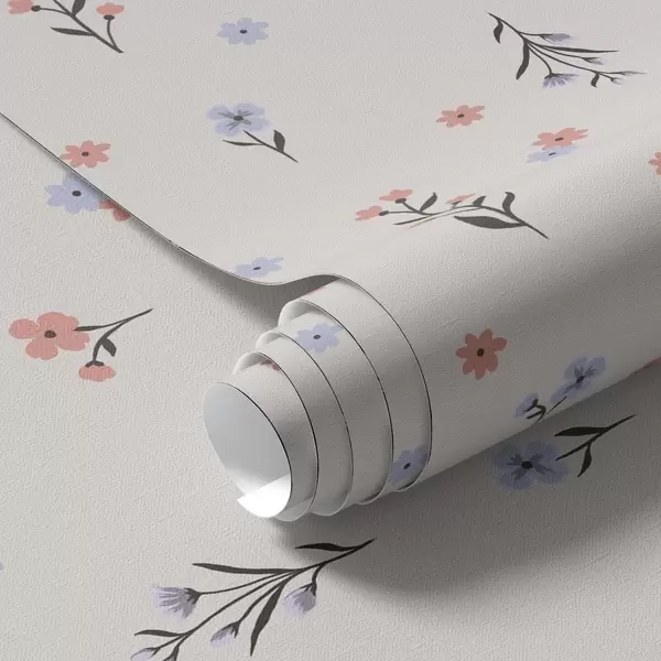 Tapetes Nelieli ziedi gaiši rozā un zilos toņos uz krēmkrāsas fona Nr. a00110