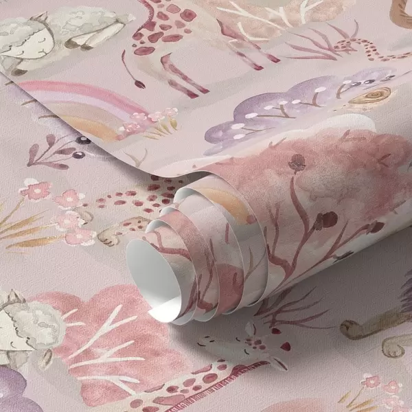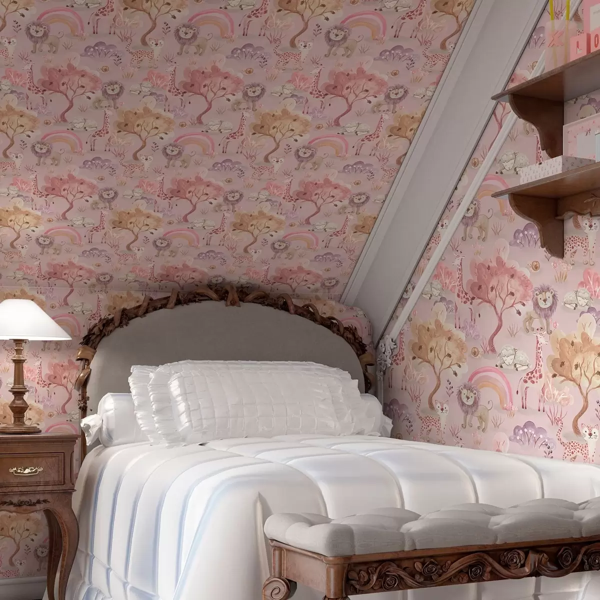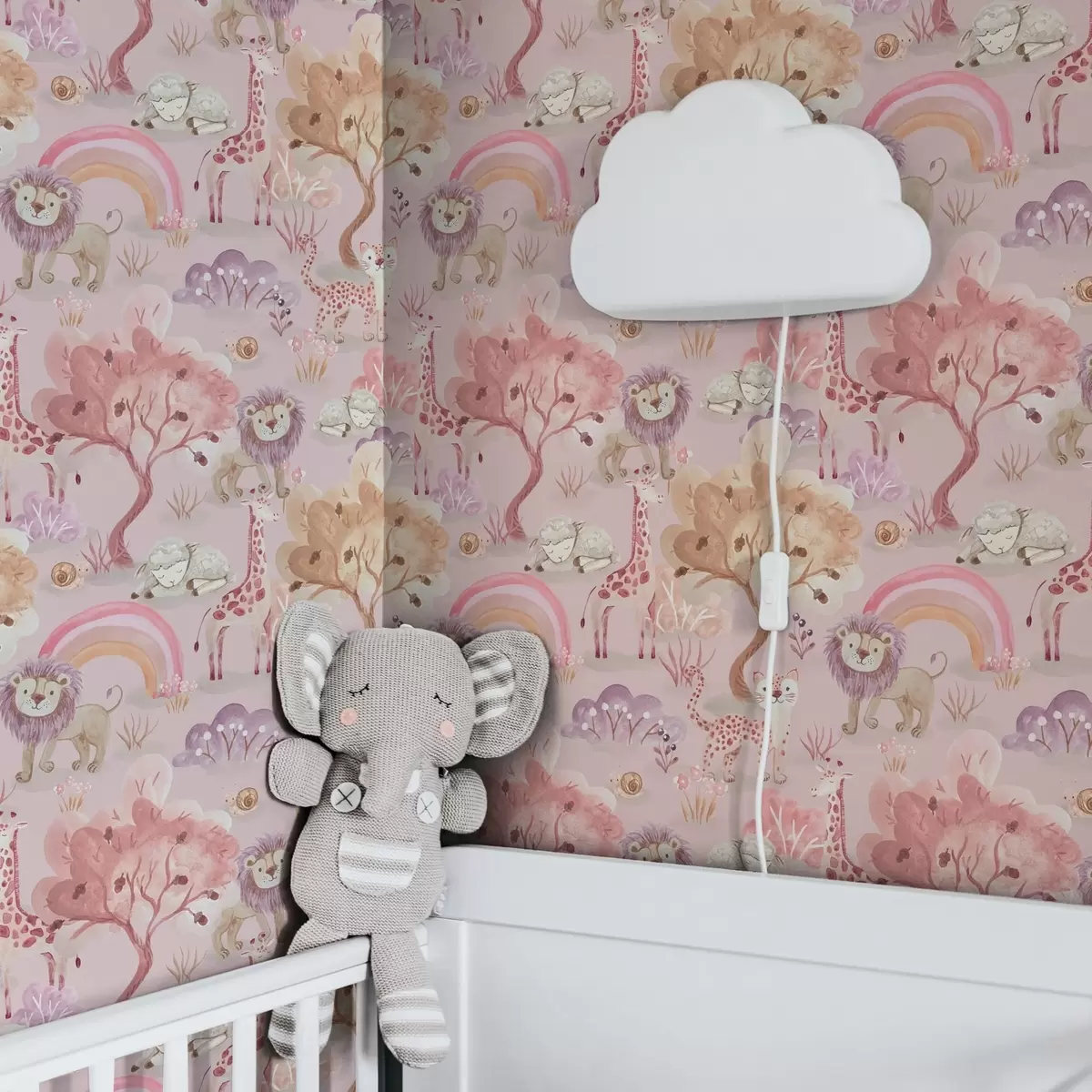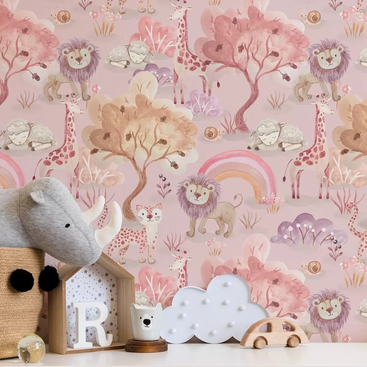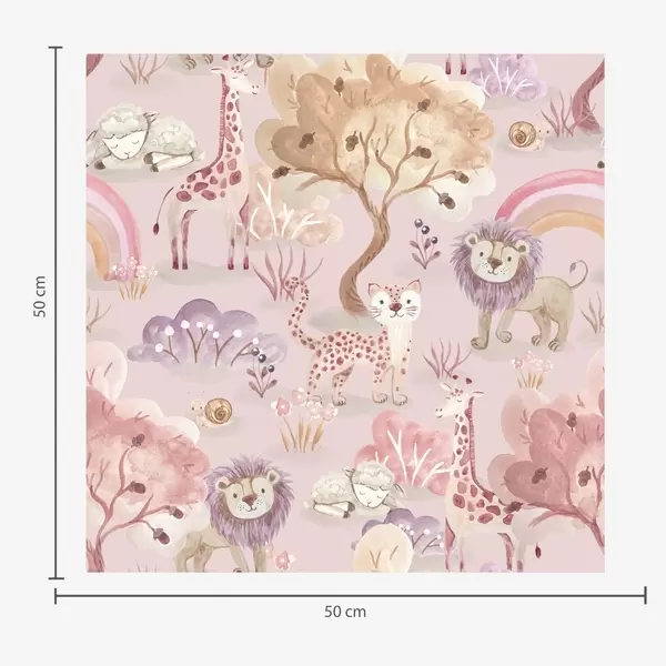 Tapetes Lauvu mazuļi, žirafes un varavīksnes pasteļmežā Nr. a00112