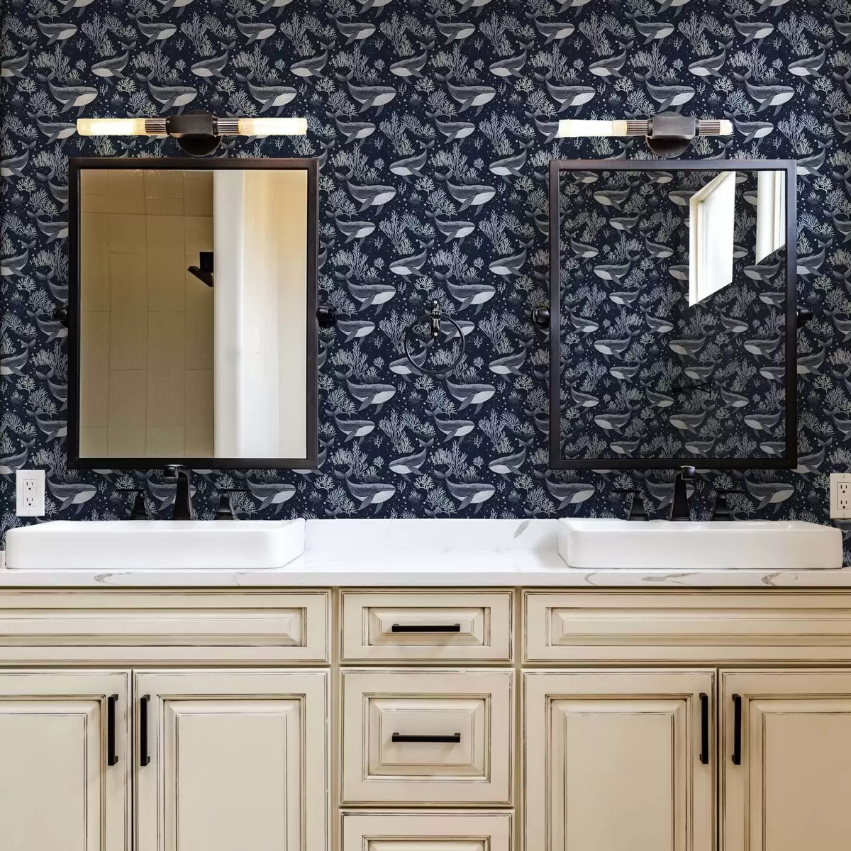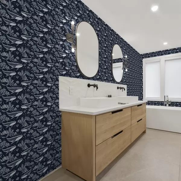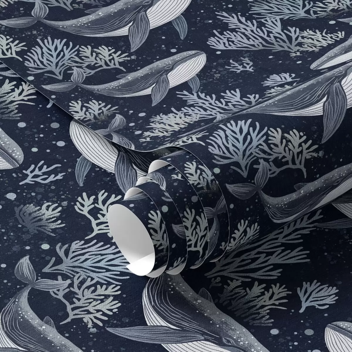 Tapetes Vaļi un koraļļi uz tumši zila fona Nr. a00116v1