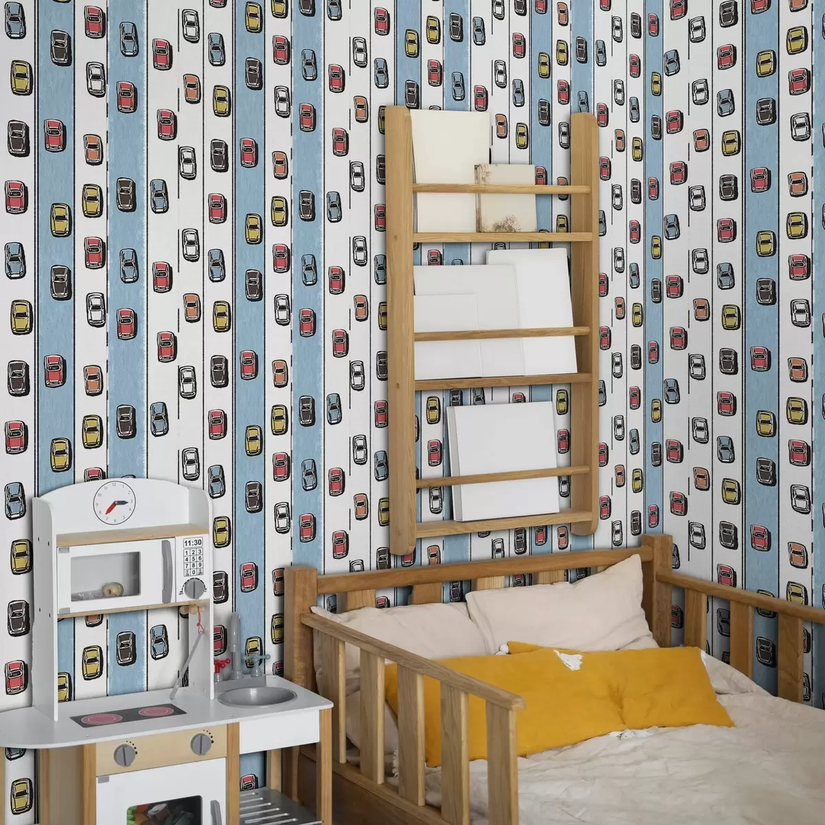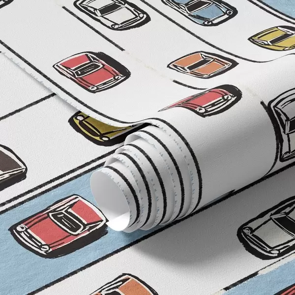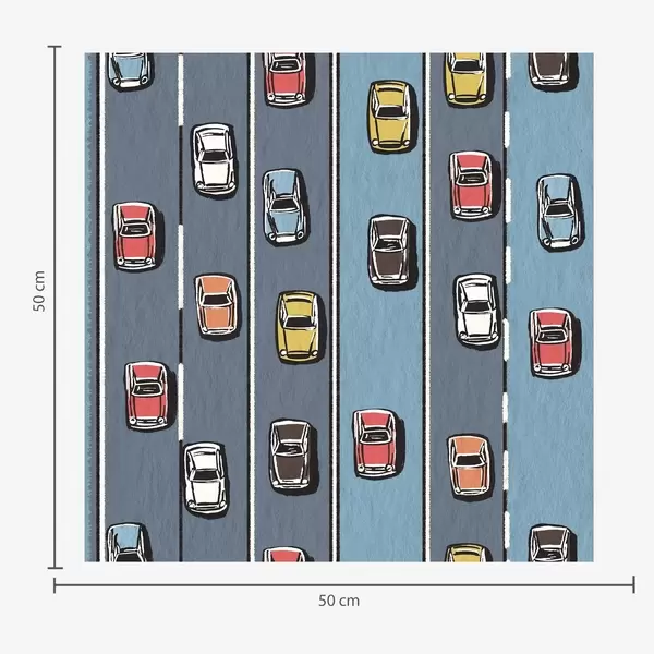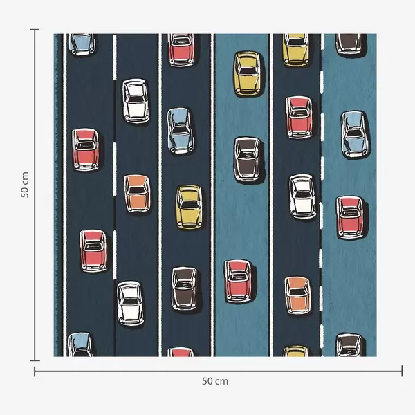 Tapetes Retro automašīna uz balta un zila ceļa 60. gadu stilā Nr. a00118v2
