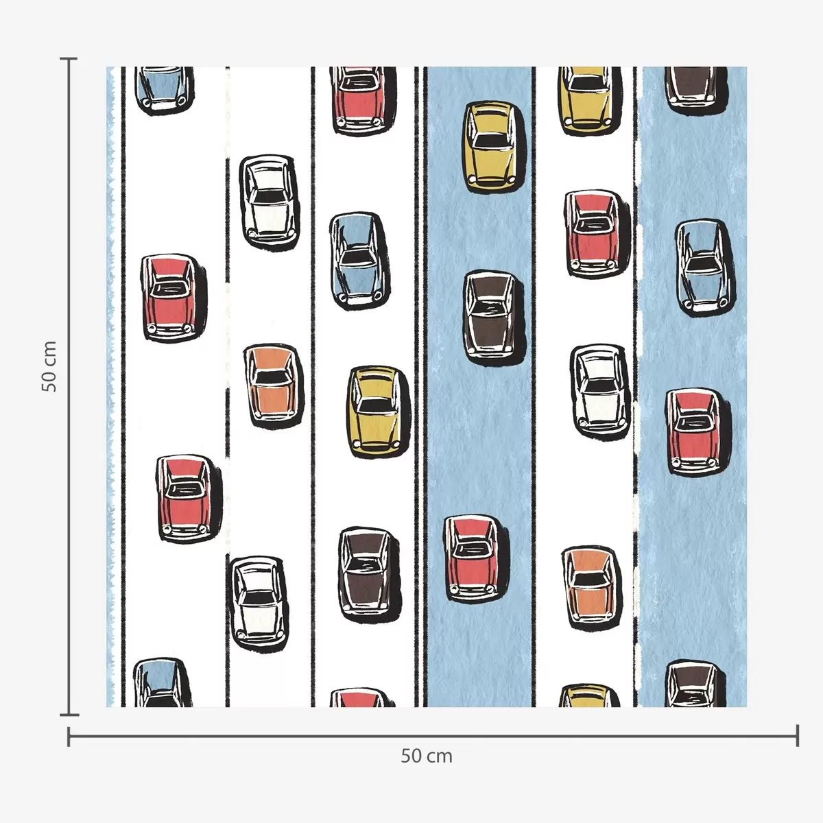 Attēls tiek izdrukāts jūsu norādītajā izmērā un sagriezts vienādās lentēs, kuru platums nepārsniedz 50 cm.