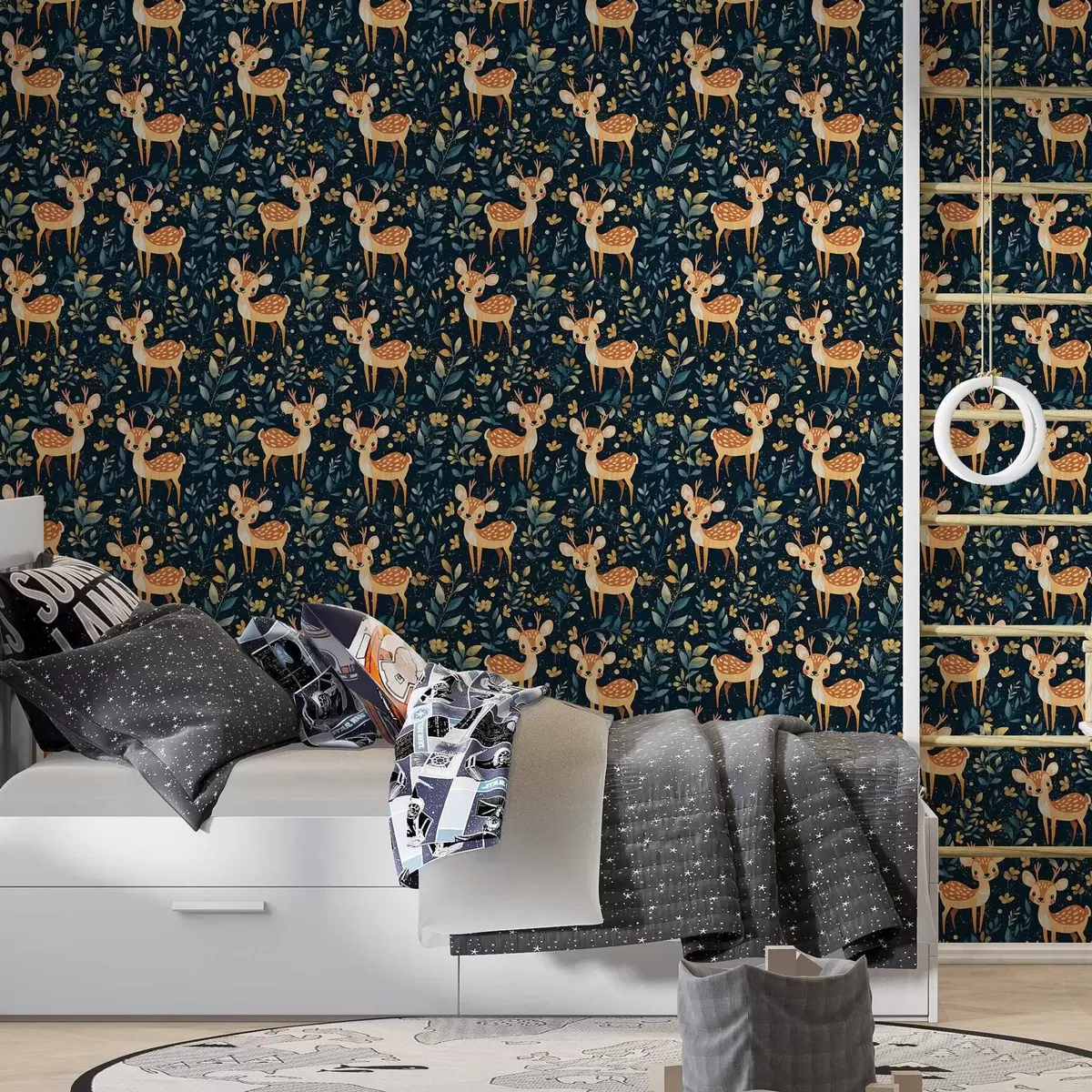 Tapetes Aļņa tumšā mežā ar dzeltenām lapām Nr. a00124