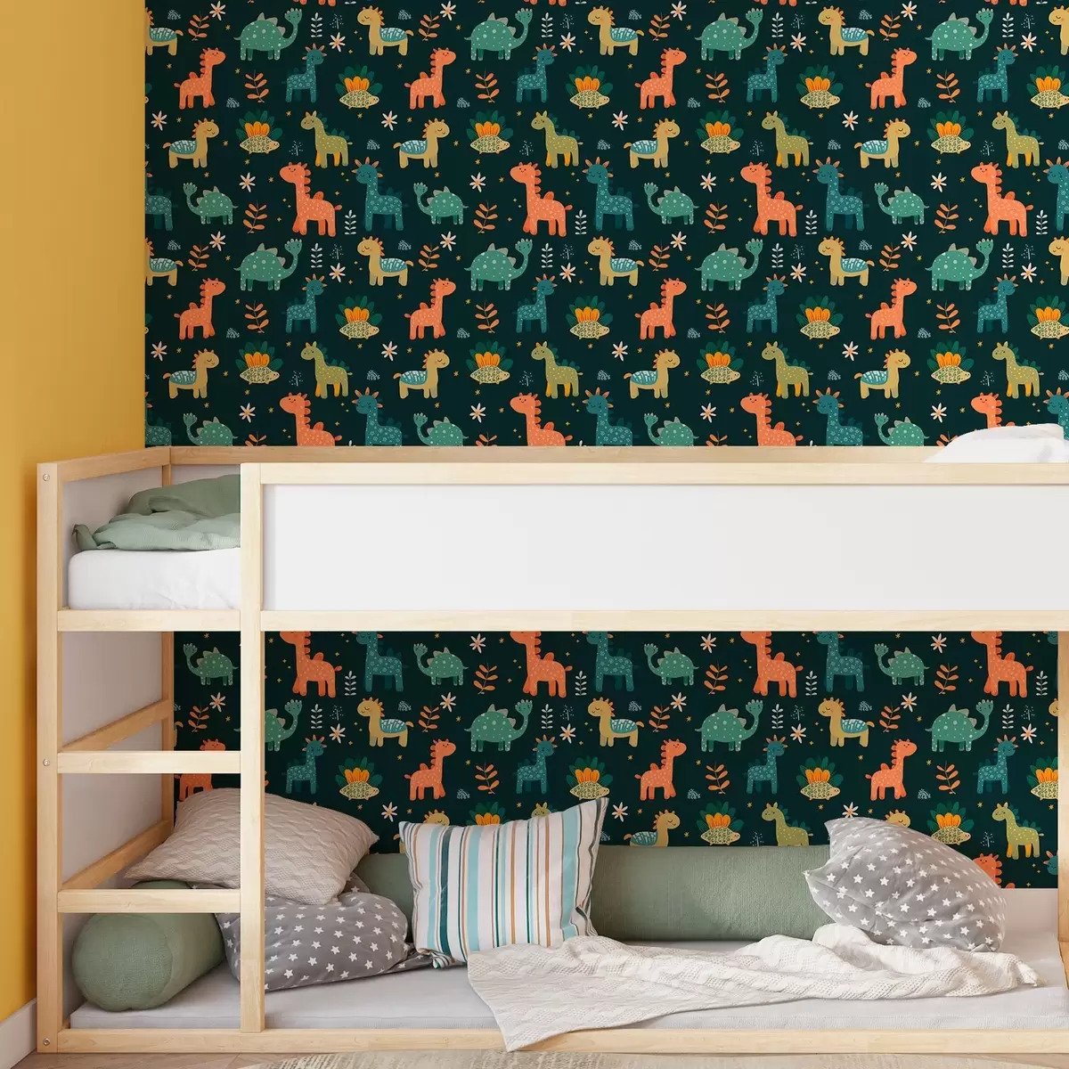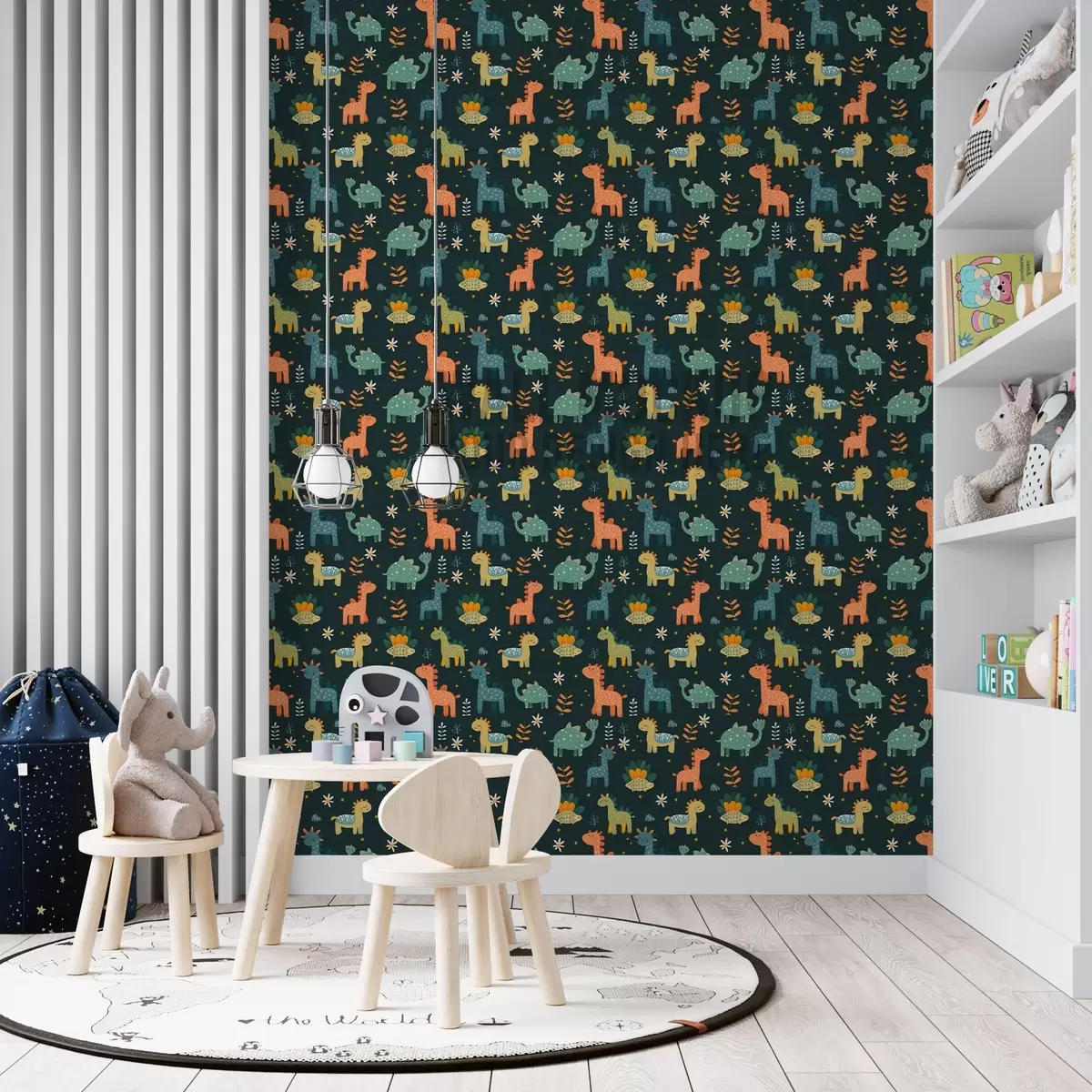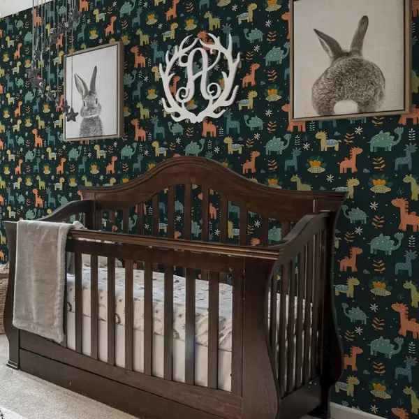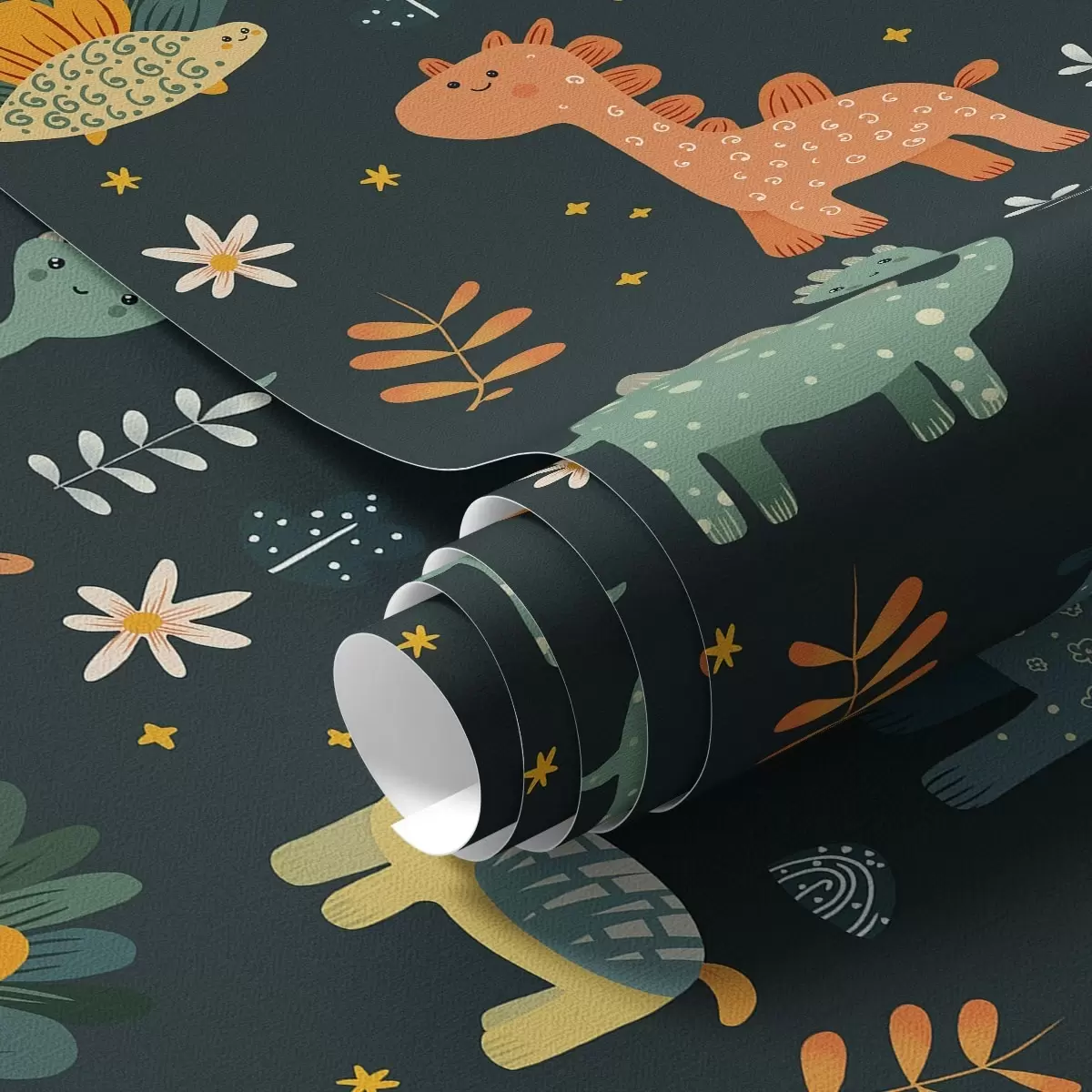 Tapetes Smieklīgi dinozauri pasteļtoņos uz tumša fona Nr. a00125v2